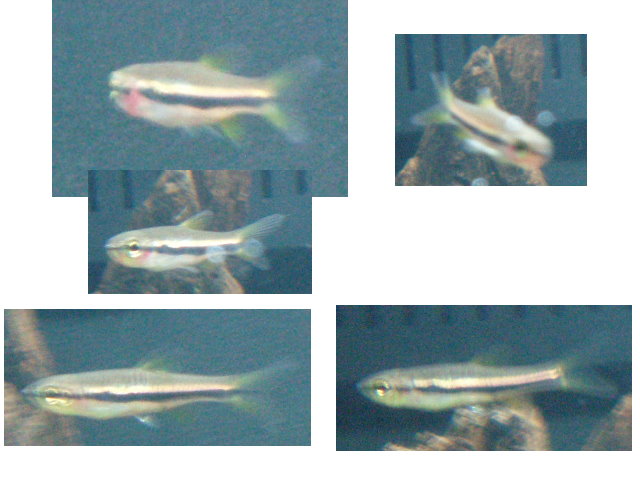 Köpte nyligen hem ca 20st Rasbora Maculata, men 3st av ser helt annorlunda ut. De har en rand längs hela kroppen, till och med ut över stjärtfenan. De har en röd prick på "kinden". De är också aningen större och robustare. Misstänker någon sorts rasbora, då de stimmar tillsammans med mina Dvärgrasbora.