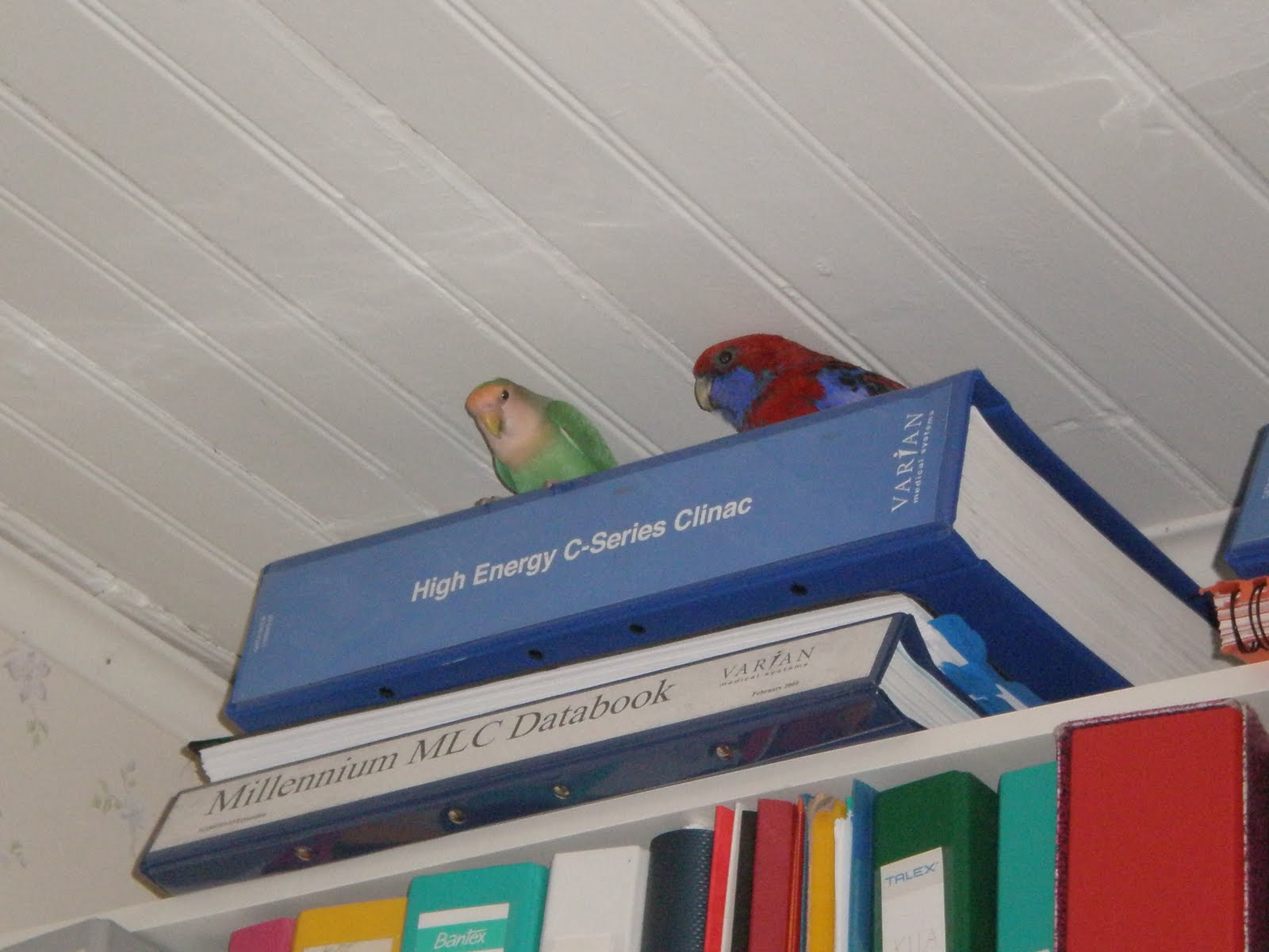 Min nyupptäckta kärlek är katarinaparakiten. Det är en mysig, lugn fågel som inte låter så mycket. Den kuttrar mest men kan skrika till. Dock inte så att det stör. De kan hållas tillsammans med andra små parakiter, t ex gräsparakiter och även finkar. Oerhört snälla, blir tama och kan även lära sig prata. Här är min nyaste hona med sin pappa i bakgrunden.