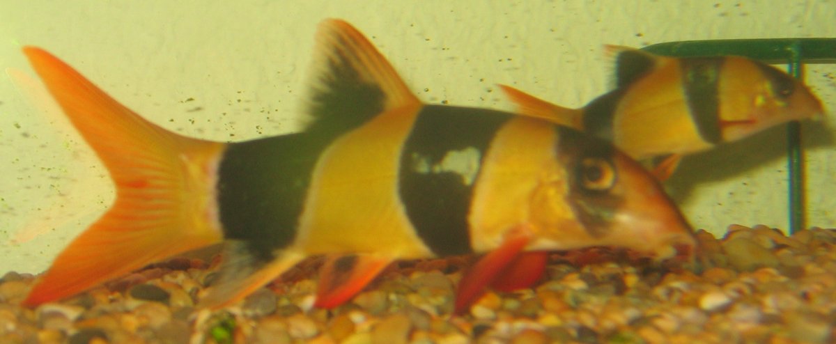 Den stora (ca 10 cm) har markanta vita fläckar medan en av de mindre (ca 5 cm) är mer täckt av det vita. De verkar inte må dåligt av det men det ser inte friskt ut!