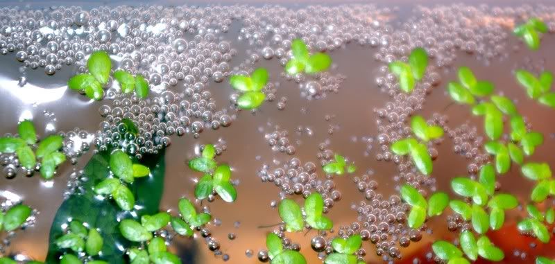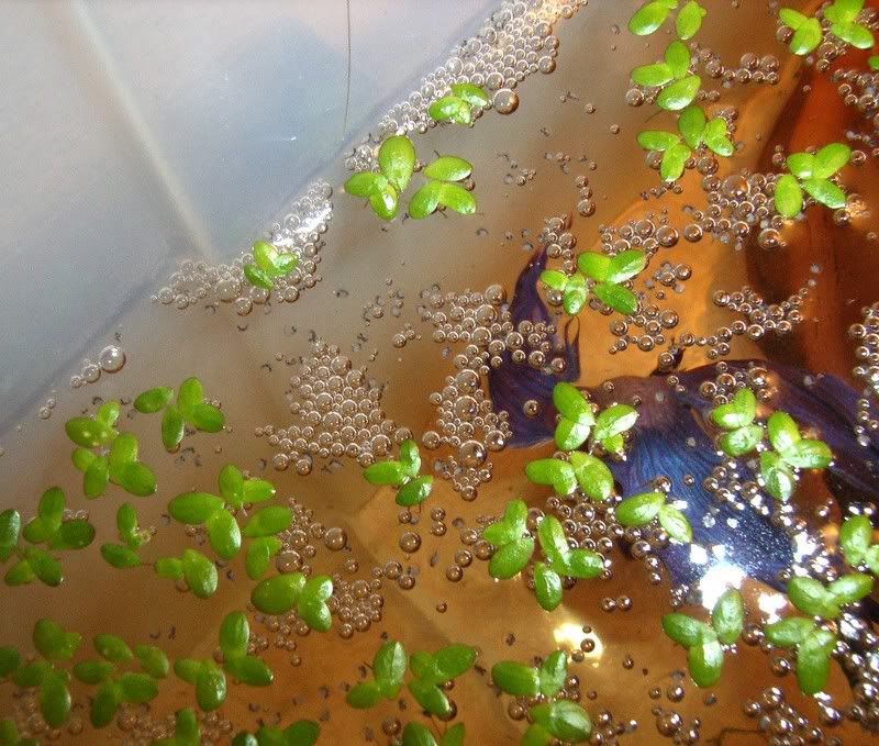 Han hade dessutom varit extra osmart & byggt i den delen av baljan där det inte fanns några flytväxter eller någonting stabilt som höll upp äggen, men efter att jag la i ännu mer flytväxter igår så kanske det är lite mer stabilitet nu.