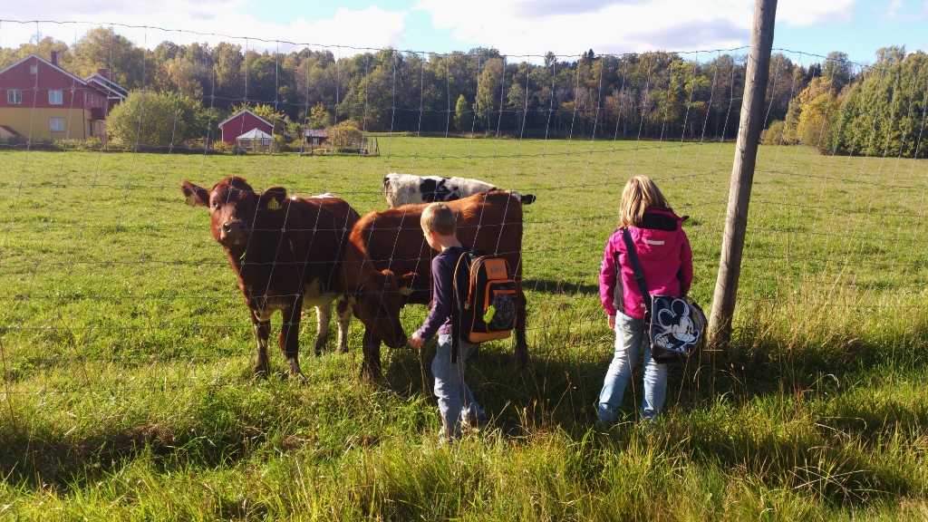 Sedan är det Mini MammaMu och hennes små polare som brukar vara nyfikna vid staketet.