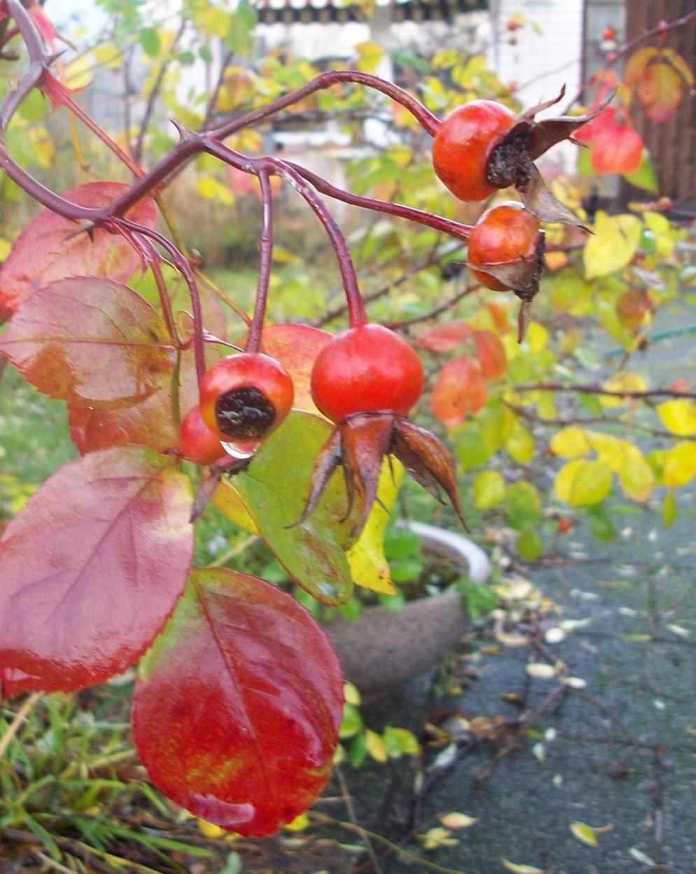 Av den sköna rosen har det blivit oranga vackra nypon...