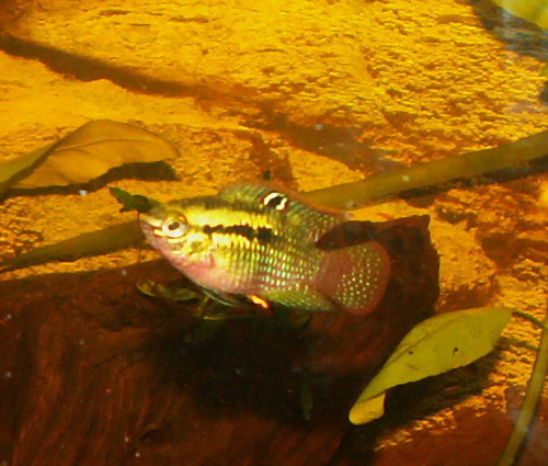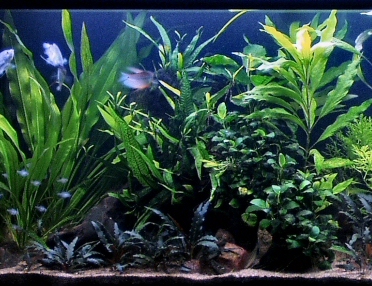 Nå, där har simmat fisk av olika slag hela tiden. Från början var det "Fem fina fiskar... fåtal fler" OM ni minns dem (rödmunstetror, närmare bestämt).Just nu är det ett Molly-par, ett kampfisk-par, en platy, fyra överblivna pansarmalar av olika sort... och yngel av Molly och platy (både röda och blå)...
