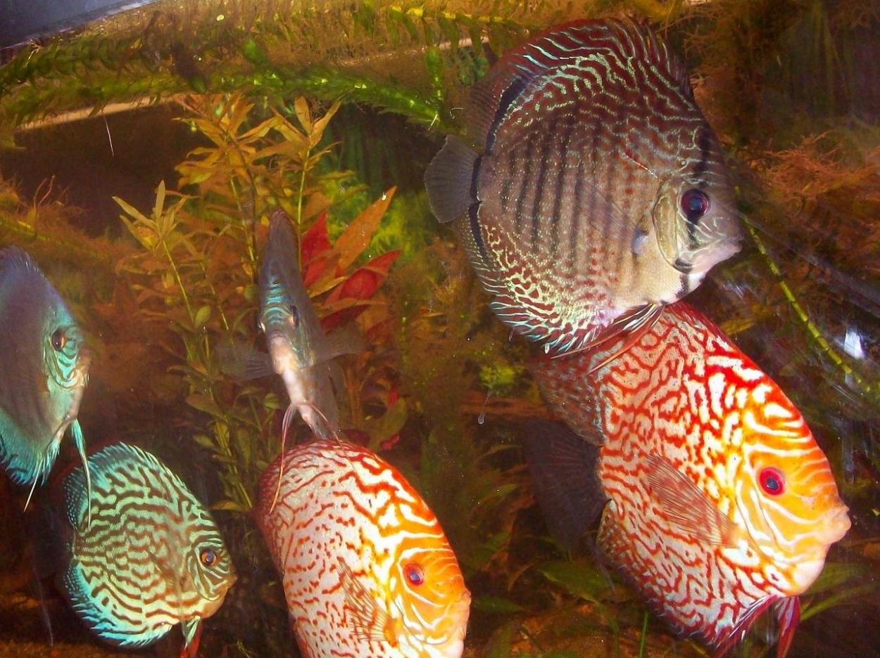 Finns många kar med diskus där, den ena fisken flashiga än den andra... och så ett par små akvarium med mindre flashiga brunaktiga modeller. Sist jag var där fastnade jag för en av dessa fiskar med mörk svartblå bård på fenorna. Fanns bara en med den teckningen i hela affären... men då var förståndet starkare än hjärtat, så jag köpte den inte. Den - eller en likadan! - fanns fortfarande kvar... och jag som bara skulle titta