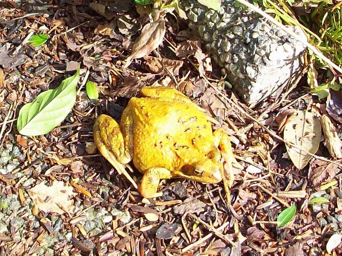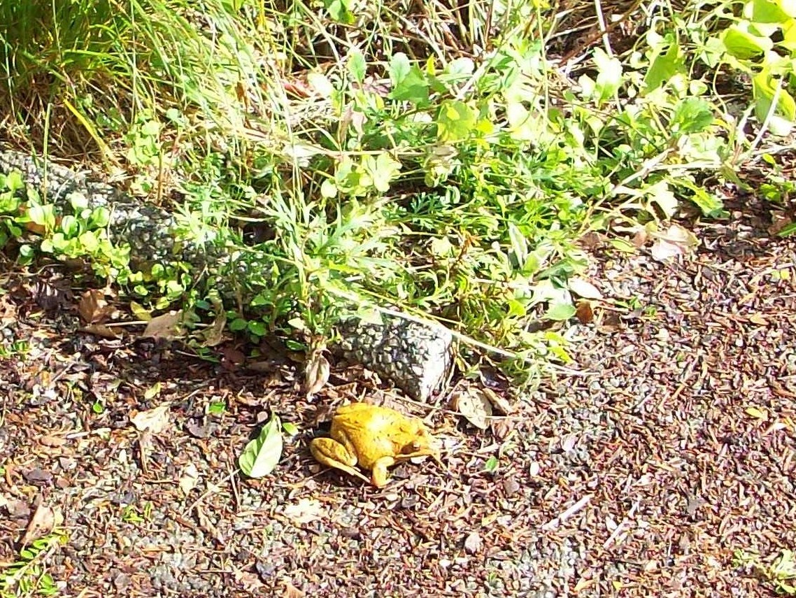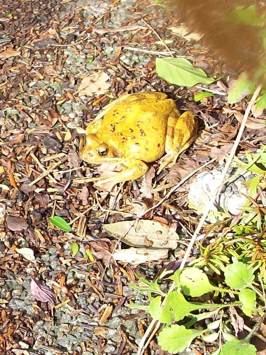 Den här citrongula grodan / paddan mötte mig igår när jag kom från jobbet igår. Någon som vet vad vad det är för en? Citrongul, som sagt... och närmre en decimeter bred över ryggen.