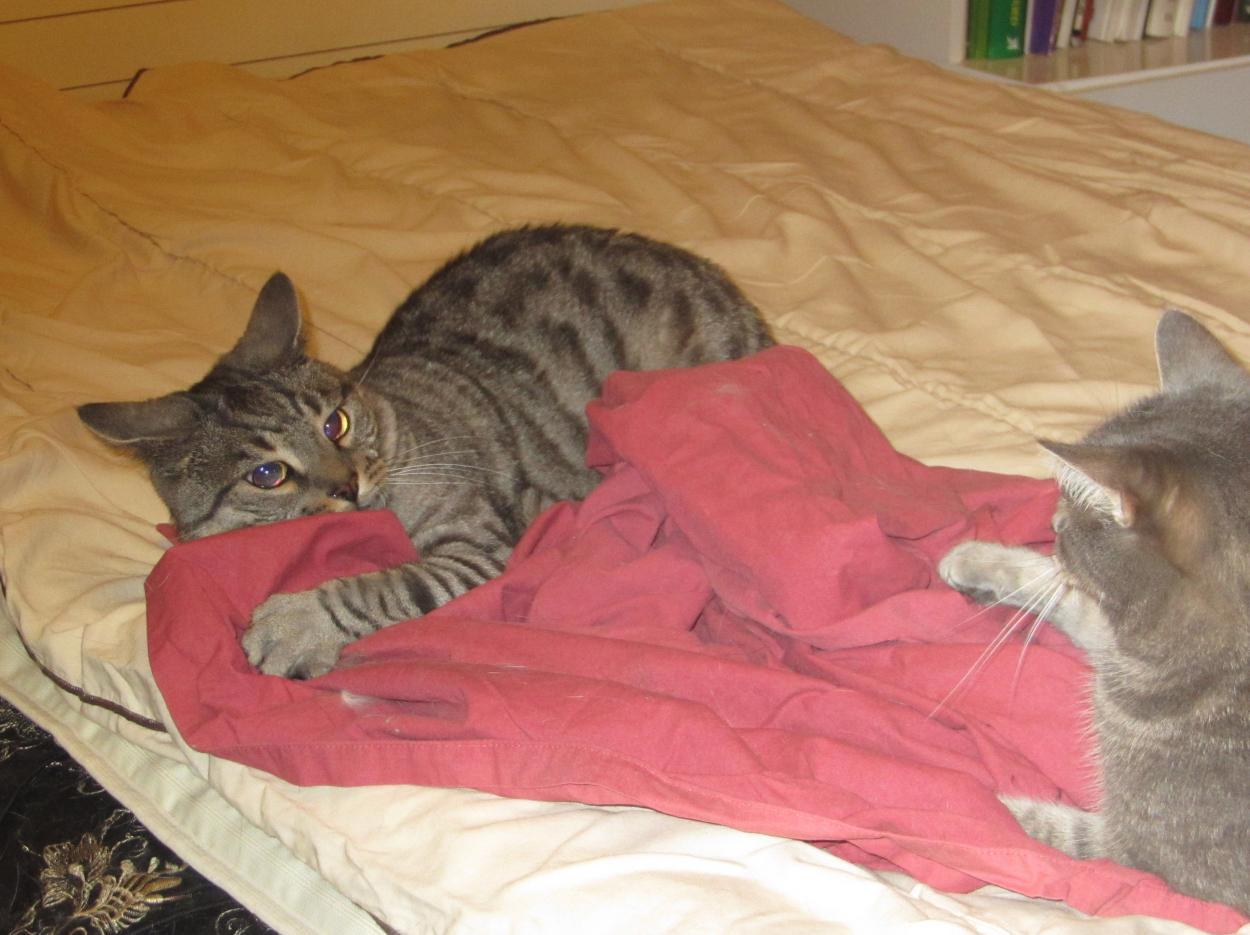 Mitt i kampen om huruvida det är mina lakan - eller katternas! - , ringde grannen och berättar med darrande röst att Besten var sjuk, jättesjuk... han kunde inte resa sig upp.