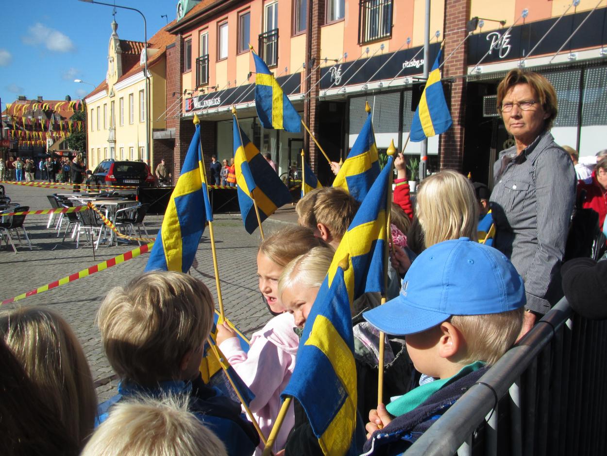 Alla skolklasser och förskolor var inbjudna för att kanta vägen för selebriteterna... ok, det lät ju trevligt, men frågetecken var många, vilket orakade ganska mycket huvudbry på jobbet. De enda som hade en förutbestämd plats var förskolorna... men för oss var placeringen fri. Var skulle vi stå?