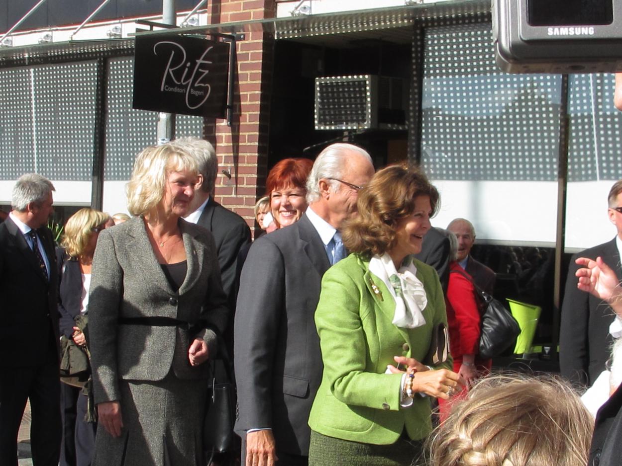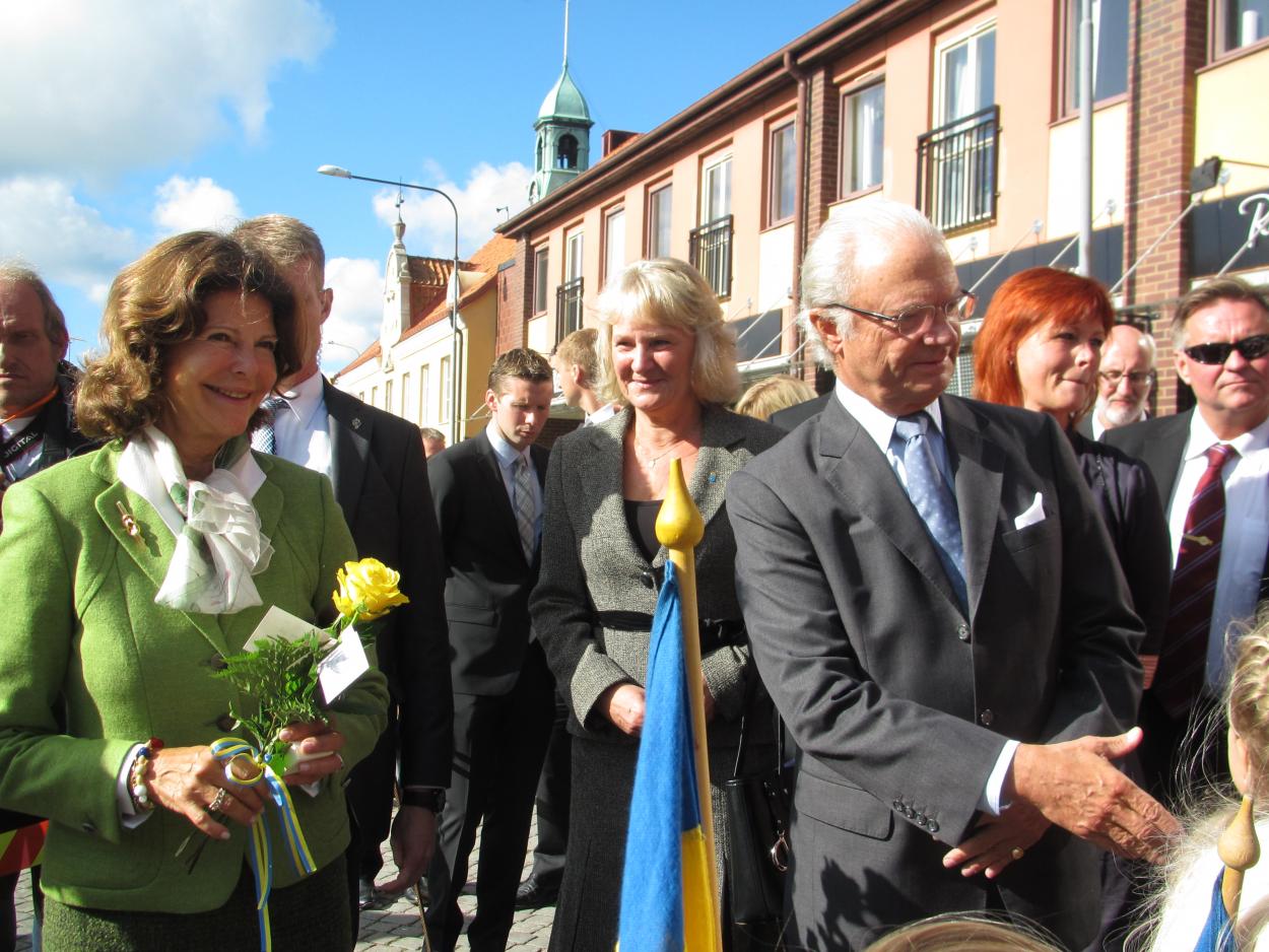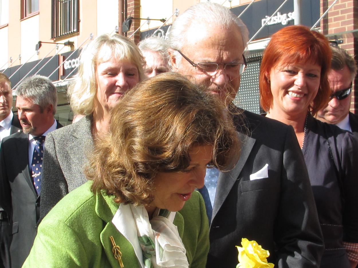 Förutom Drottning Silvia längst fram, så är det Berit Andnor Bylund, Blekinges landshövding och Heléne Björklund, Sölvesborgs kommunalråd som kikar fram bakom Kung Karl XVI Gustaf... "Halv tio, ungefär..."