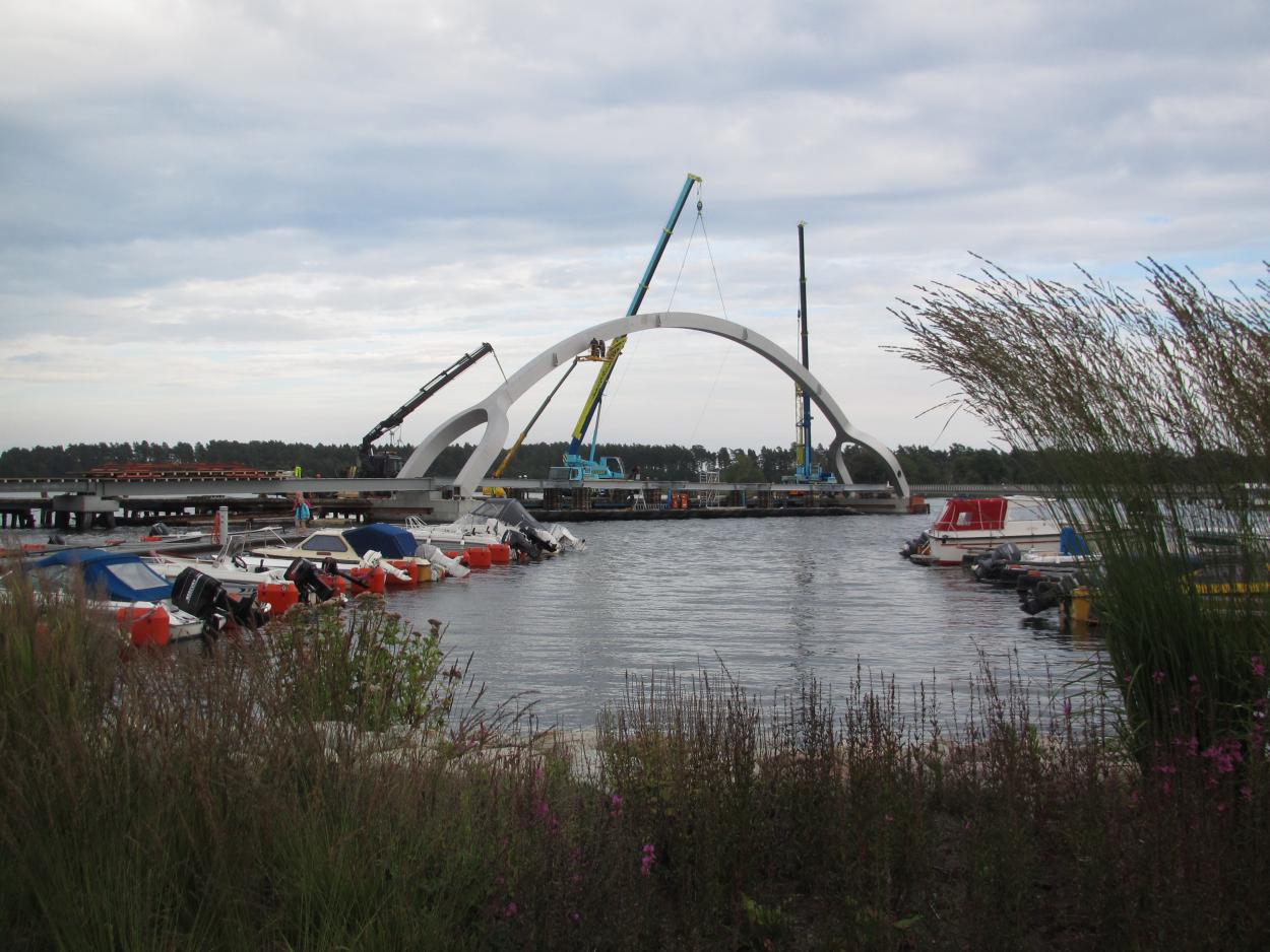 Mannen i slips bakom landshövdingen heter Ronny Södergren och har konstrukterat bron över Sölvesborgsviken...