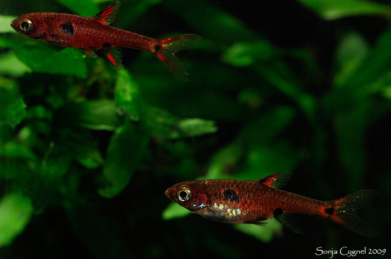 Jag skaffade 10 st i augusti 2005 och det dök upp en del yngel av sig själv då och då innan jag lät ett gäng körsbärsräkor flytta in. Jag har haft som mest 18 maculatus och kan se minst 10 nu när jag kikar in i det tättbevuxna karet. Det finns säkert många fler inne i grönskan.