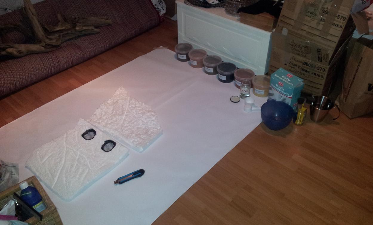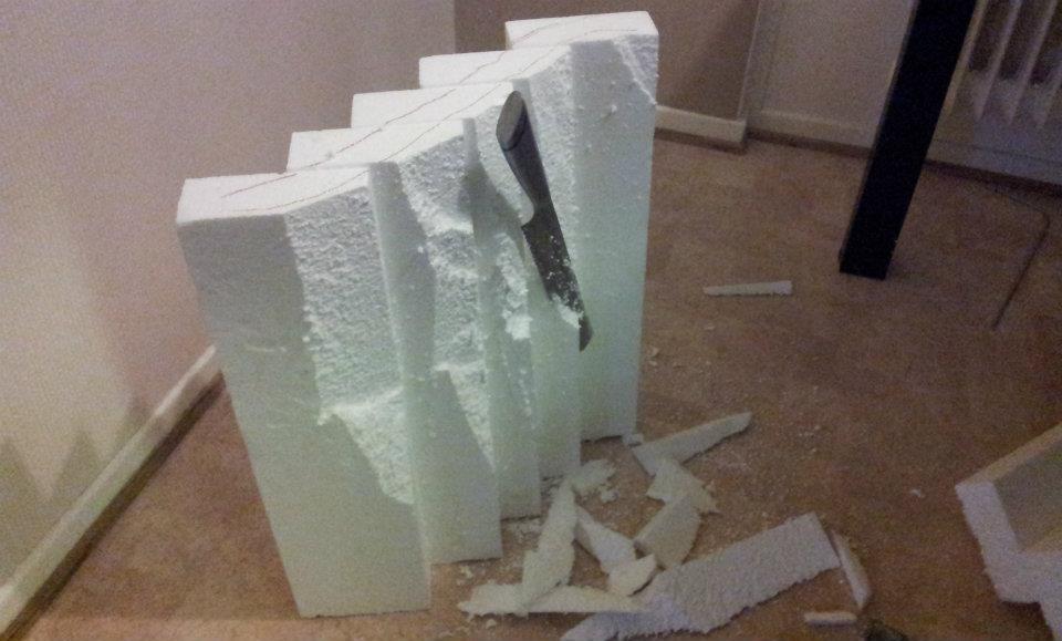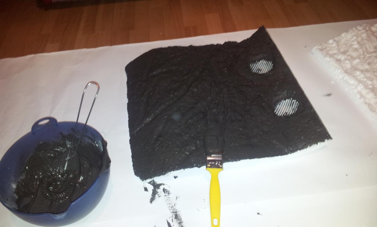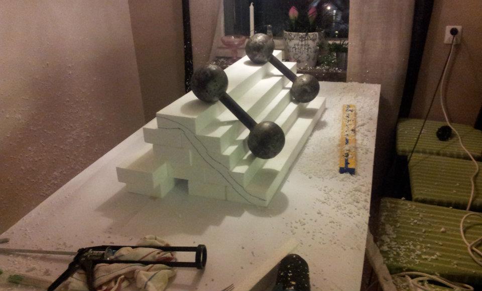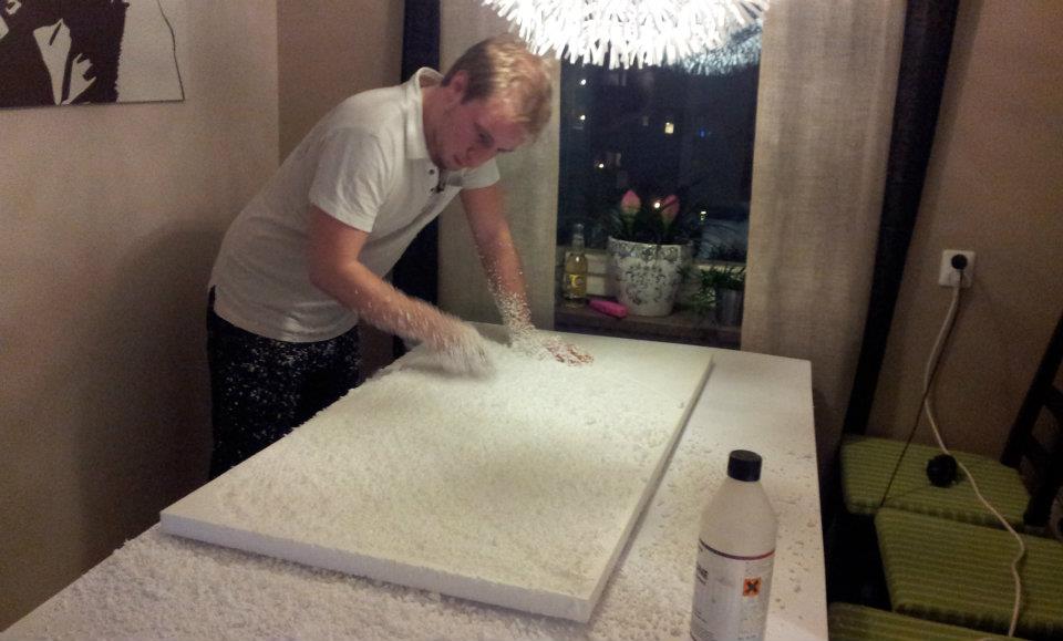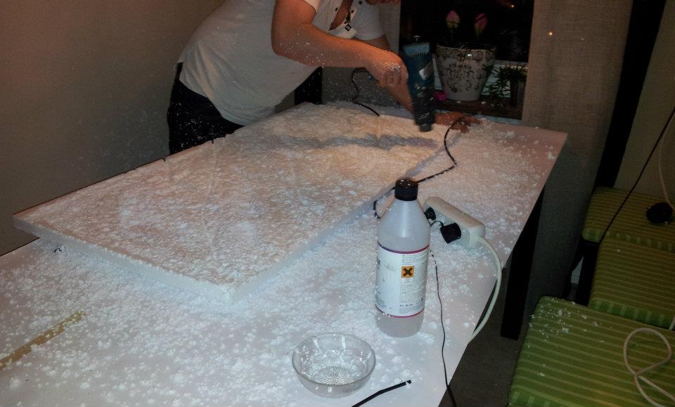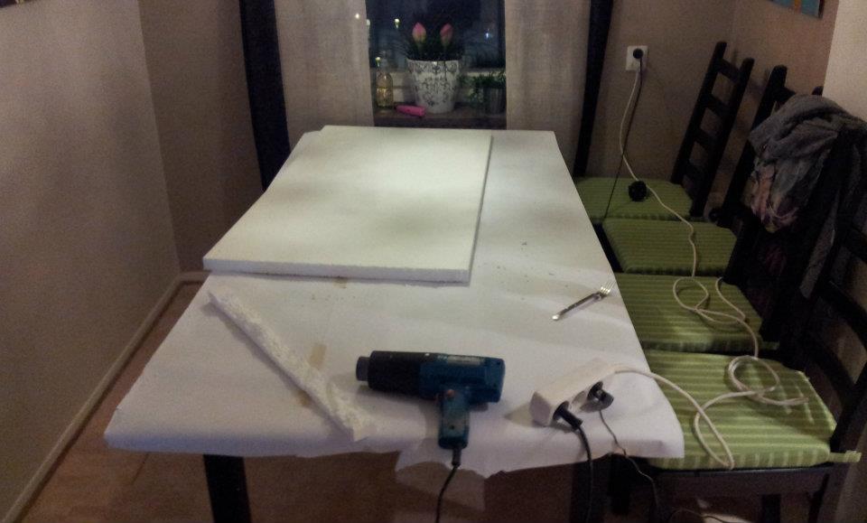Jag började med att raspa ut ett mönster i frigoliten som jag ville ha. Sen gick jag över med en värmepistol för att smälta ihop det så det blev en fast yta.