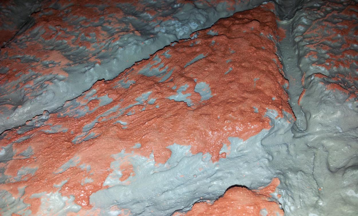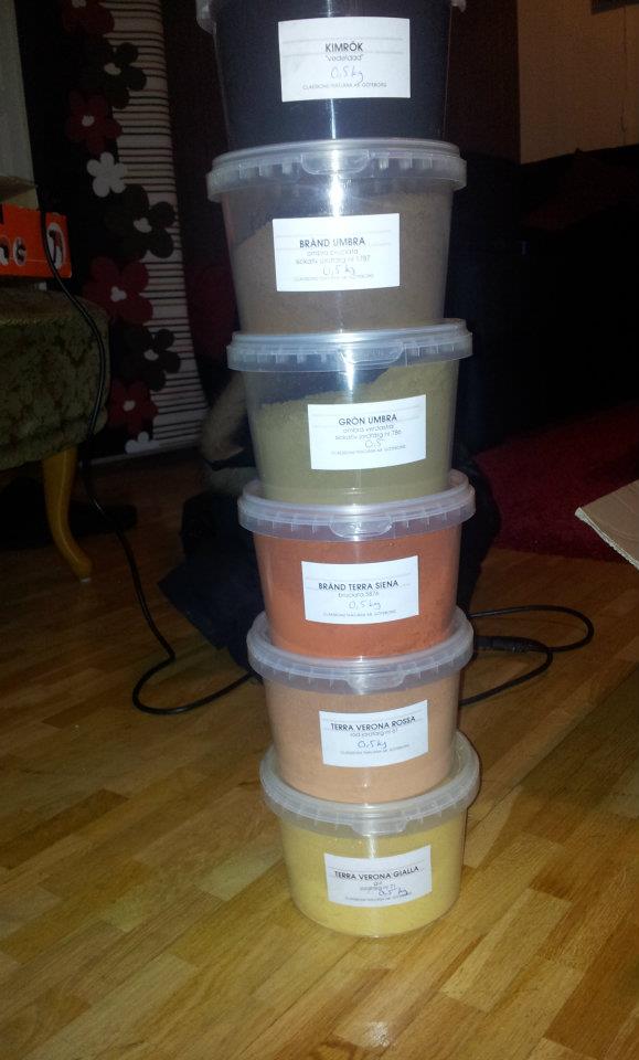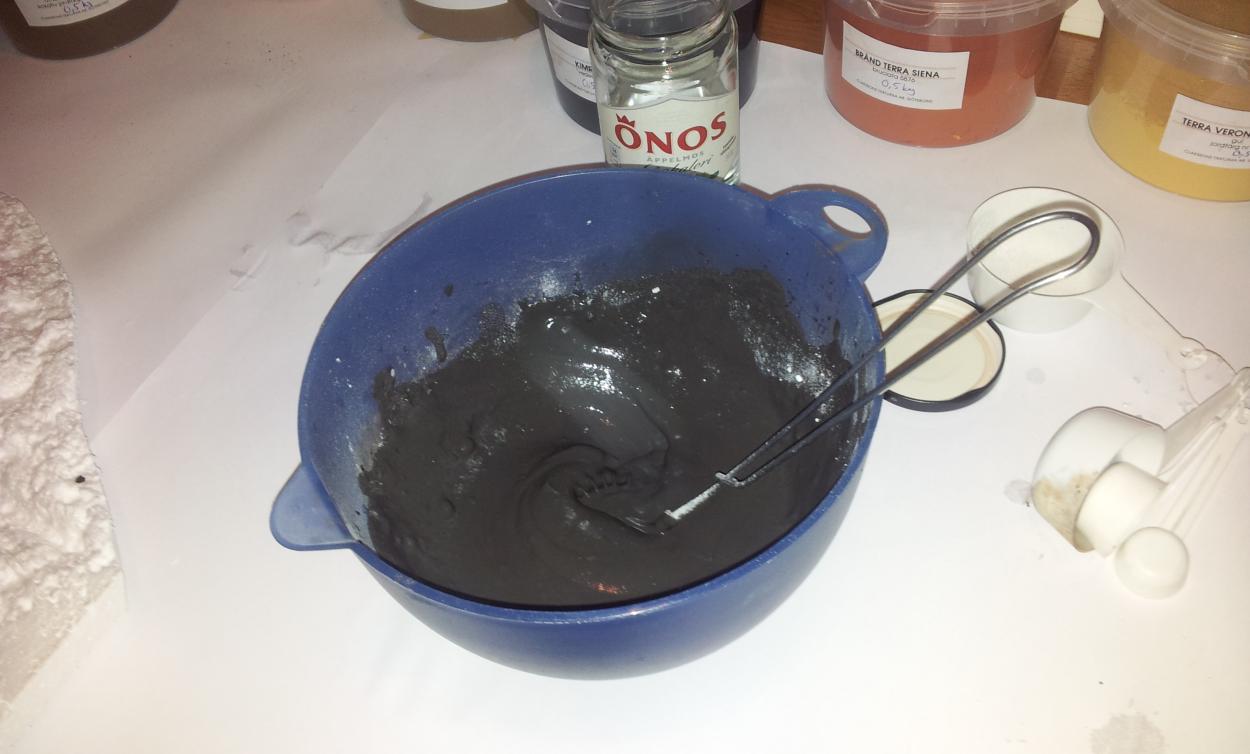 Jag la i färgpigment i husfixen. Först ett svart lager i grunden, sen gick över med andra färger i andra lager.