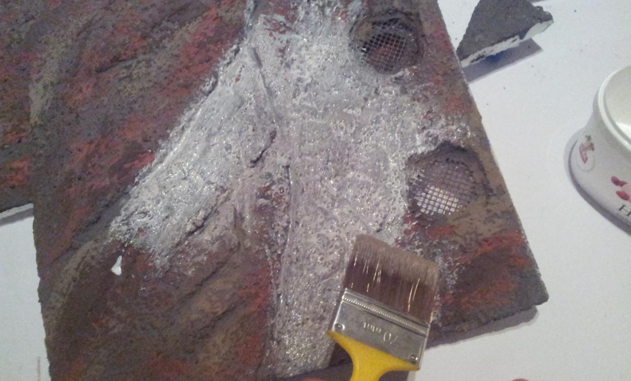 Till mina moduler silikonade jag ihop block av frigolit o karvade ut moduler. Jag använde ett grillnät för att göra raster till insuget.