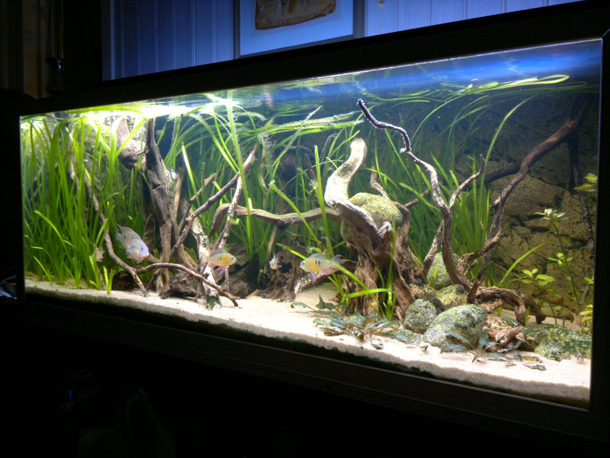 Jag har just handlat ett 110 liter som ska ersätta det 54 liter jag har haft i ett par år. I 54 litern har jag haft ett rätt grovkornigt grus av "standardsort", är osäker på exakt storlek. För vattenbyten har jag använt en hävert som jag tryckt ner i gruset vilket är enkelt och jag gissar är det bekvämaste sättet? Men rent estetiskt så gillar jag att gruset är så finkornigt som möjligt för att det ger en snyggare skala och får akvariet att se större ut. Helst skulle jag använda riktigt finkornig sand men jag är åtminstone än så länge för okunnig och bekväm för att sköta sådant tror jag. Jag vill ha så finkornigt grus som möjligt utan att det blir "svårskött" och ger dålig näring till växter vilket jag läst att för fint grus kan göra (?) Och jag vill nog kunna trycka ner häverten också utan att röra om för mycket.