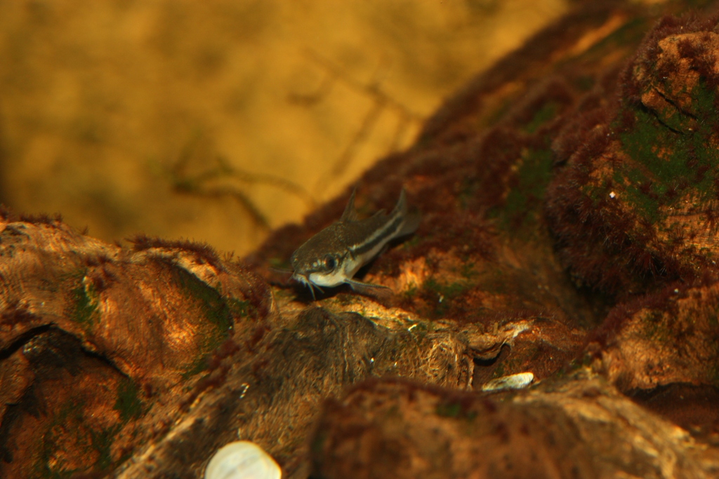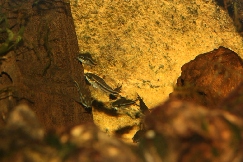 Jag har sedan ett år tillbaka en av de snyggaste Apistona jag sett i den ena kuben, och där går de ihop med ett stim med pygmécorydoras samt några grenmalar som lekt i ett tidigare kar. Här är Aquaclay som bottensubstrat, Slimline "röd gnejs" på tre sidor samt bottenfilter som rening. Helhetsbilder kommer senare när det inte är så ljust i rummet.