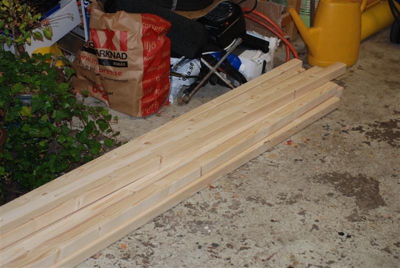 Köpte 30m virke, 12x2.5m, 45x45mm reglar