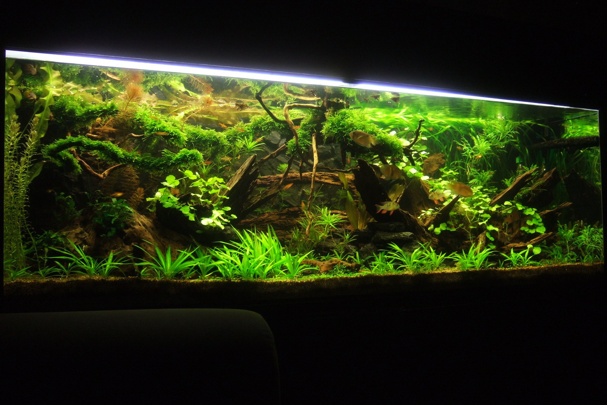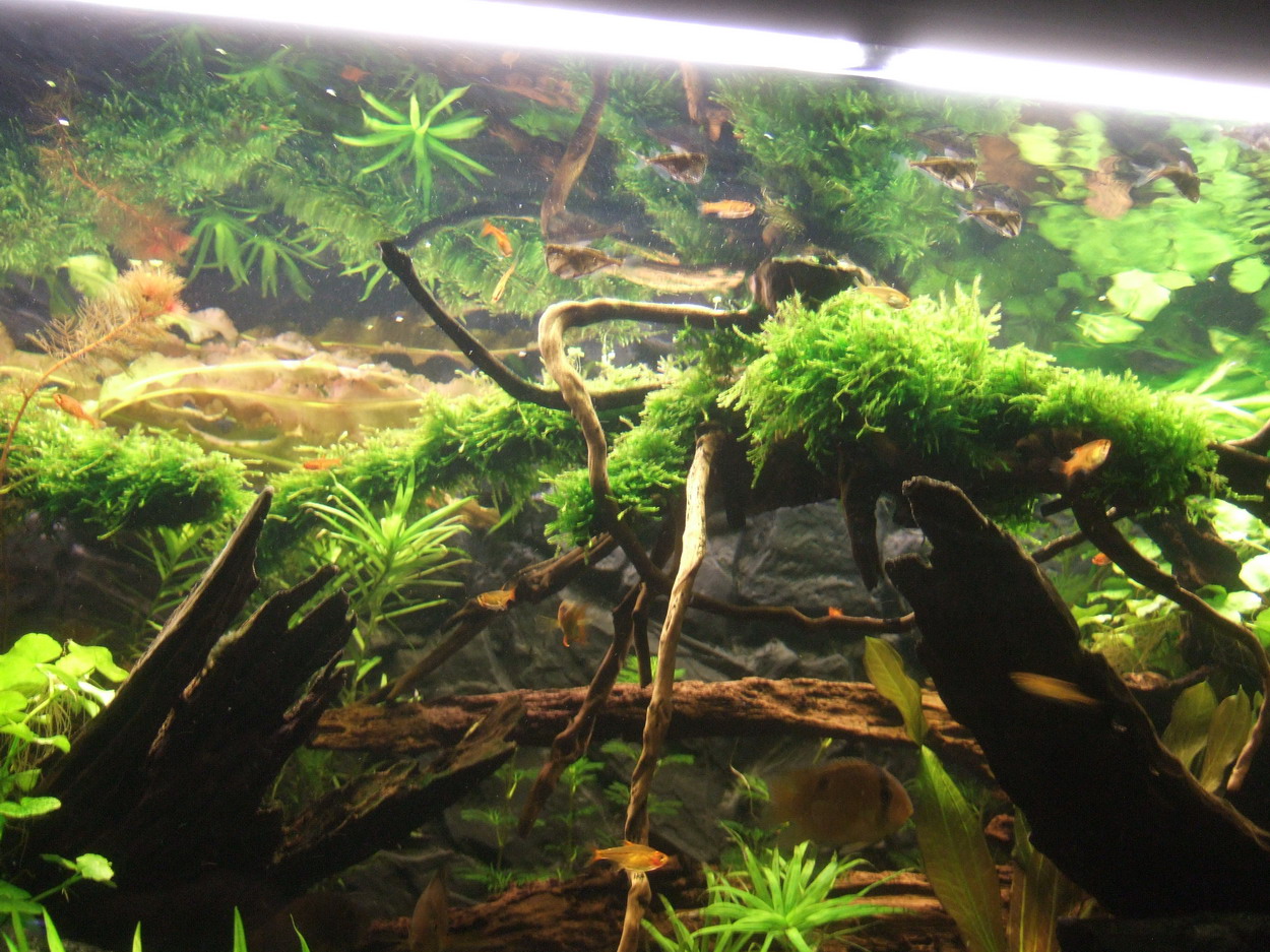 Mossan har nu tagit sig rejält och börjar behöva en ansning. Helnöjd med kontrasten mot den eldröda myriophyllumen som växer upp mellan grenarna, blev bättre än jag hoppats med den kombon. Vet inte om jag ska linda på fler grenar möjligtvis, någon som har en åsikt?