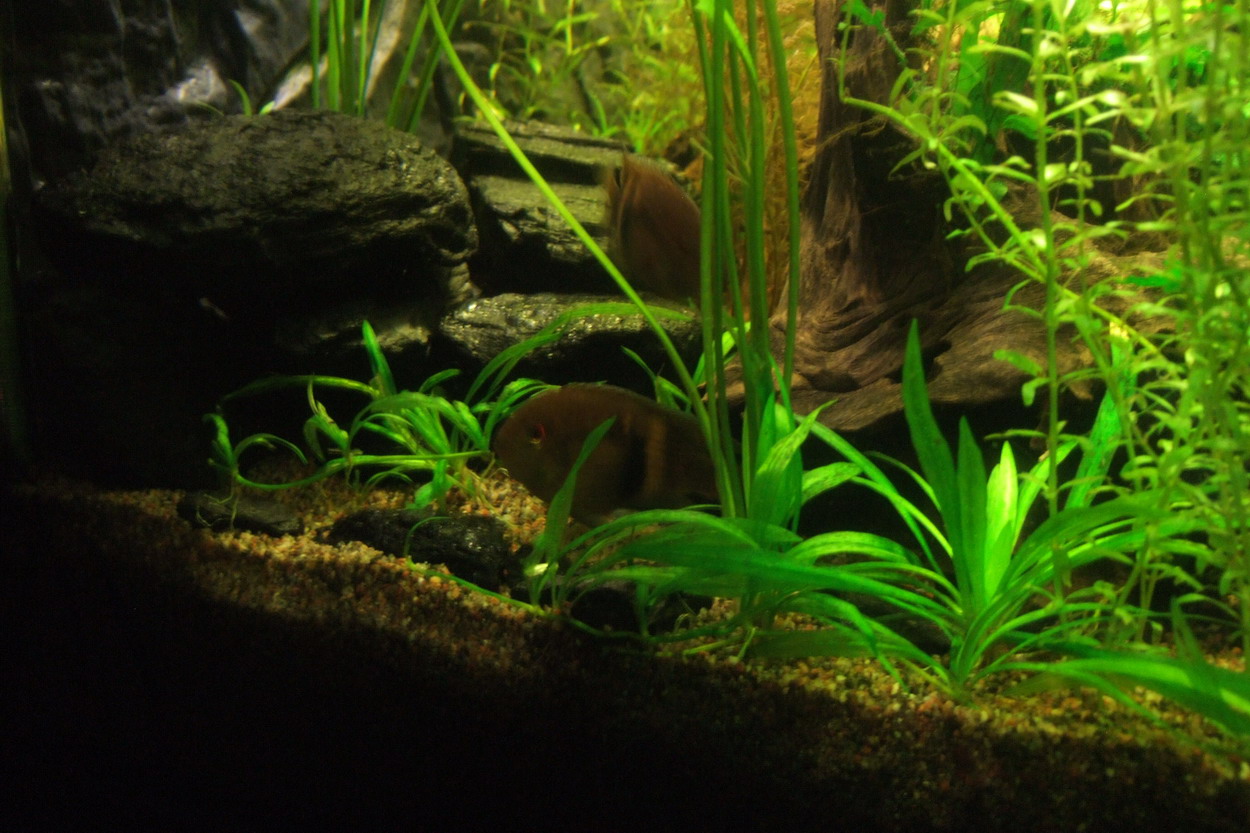 Nyckelhålen har nu börjat visa starka tecken på att ett par börjat bildas. Så de har börjat hävda revir och skaka skalle mot varandra, kul som fan! Är lite ambvivalent över hur jag ska göra nu, om jag ska flytta ut de övriga tre eller om de får gå kvar. Är ju verkligen en skön fisk med sitt stillsamma, blyga och nyfikna temperament så det vore på sätt och vis synd att bara ha 2. Å andra sidan kan det bli en tuff sits för de 3 oparade och paret kan nog behöva lite lugn så de kan leka. Någon som har några bra råd?
