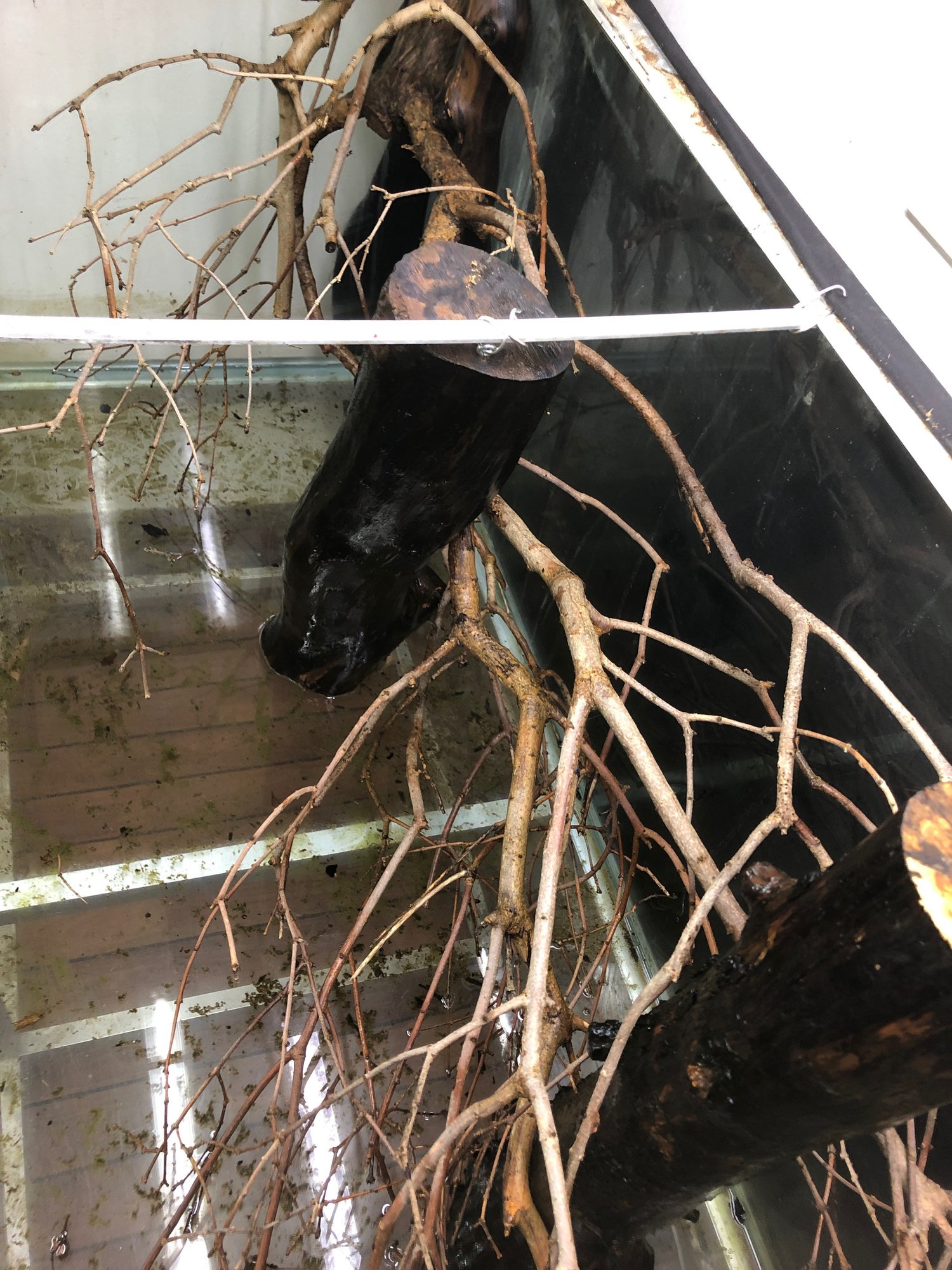 Trots att det är spännande att se dynamiken mellan de tre honorna (som slåss något alldeles oerhört) känns det som att karet är på tok för litet. Två yngelvaktande honor i ett 540-literskar är lagom.