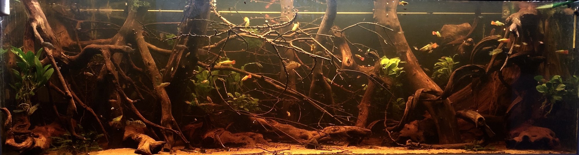 För att inredningen skulle synas hyfsat på bilden fick jag dra på MH-belysningen, det är annars mycket mörkare längst bak i karet - ungefär så som på dina senaste bilder på ditt kar.