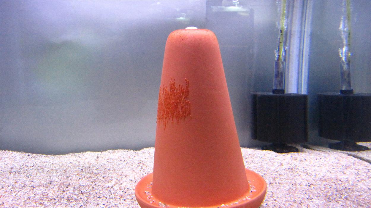 Discusyngel tyr sig till sina föräldrars mörka kroppar - och man ser tydligt att dessa discusar blir mycket mörka vid yngelvården. Jag har ju haft kolsvarta bakgrunder på alla tre sidor av kuben - och kom på att det kunde vara svaret på bekymren. Jag har på känn att ynglen har dragits till de svarta sidorna på karet, istället för att söka sig till föräldrarna.