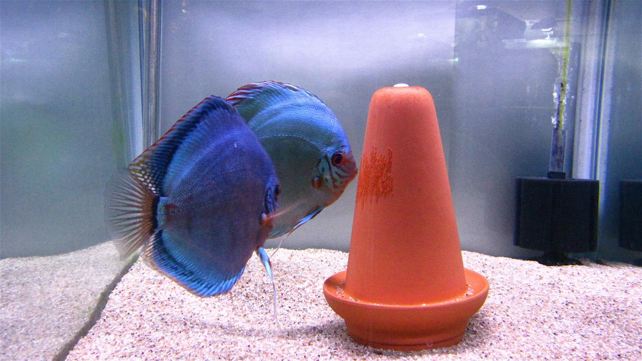 Problemet med mitt par är att ynglen liksom sprids runt i karet och dom samlas inte alls bra vid föräldrarna.