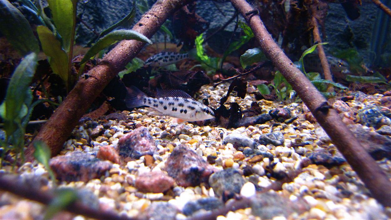vad är de för sorts fisk? den där silvriga me prickar eller ränder på ryggen. ser ut lite som en gurami.Aha - nu knäcktes sidan så jag lägger upp filmen här igen (det är ingen som går bakåt och kollar).