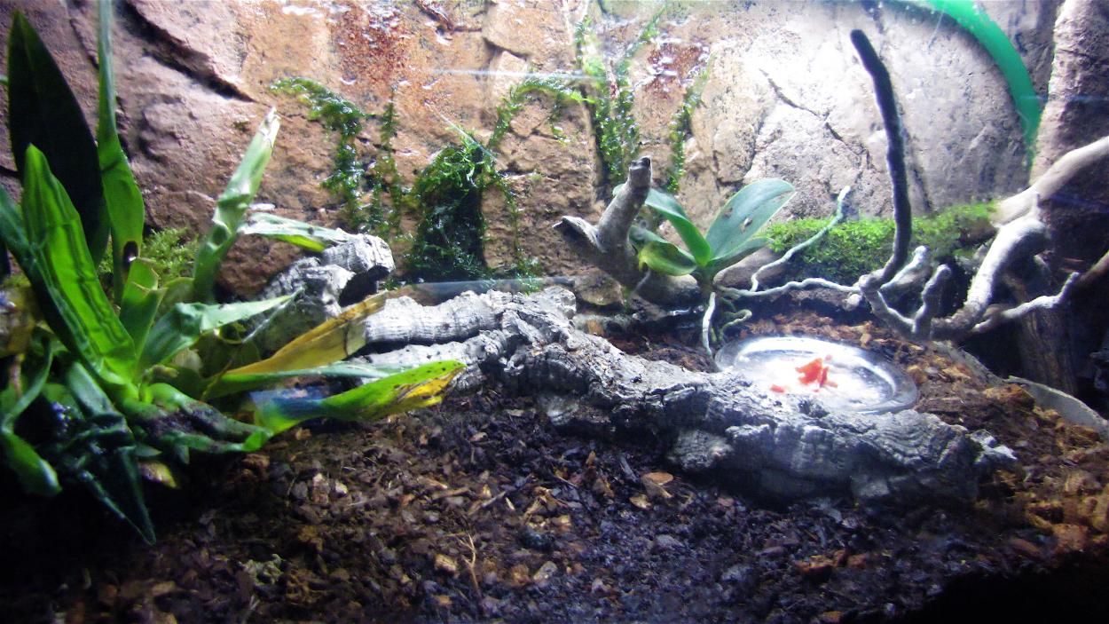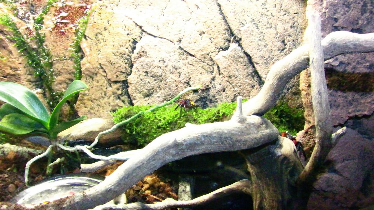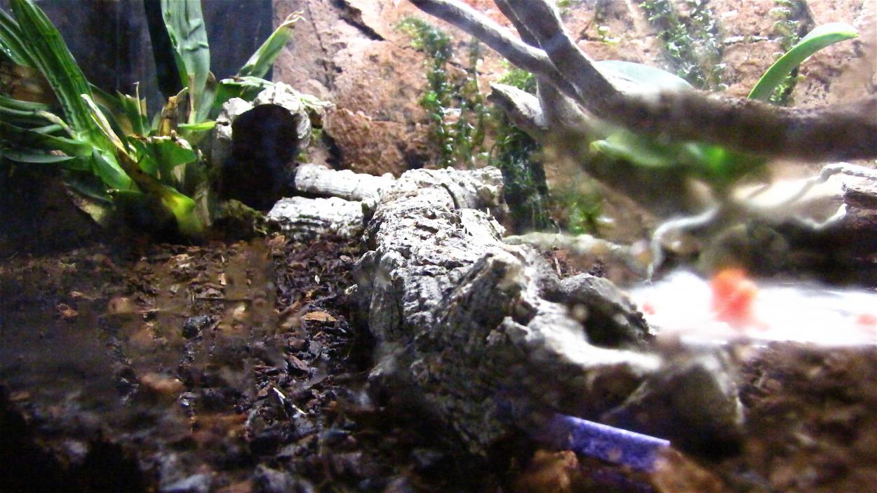 nä, det är inga djur som springer runt precis. det jag menade var att det är ju inte så kul om man måste leta igenom hela karet för att få se dom.Jag tror att de föredrar lite skuggigare platser. De kryper gärna in under rotgrenarna, och främst kryper de in i det långa korkrör som jag köpte i tyskland till dom - sedan är det inga djur som direkt irrar runt och visar upp någon direkt action, det går ganska sävligt till. Detta är något jag gillar, för det blir desto mer spännande att se dom när de visar sig. Det kan ju vara så att de är lite skygga nu i början.