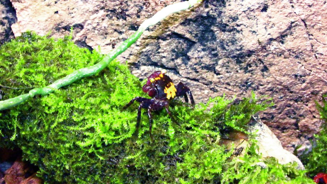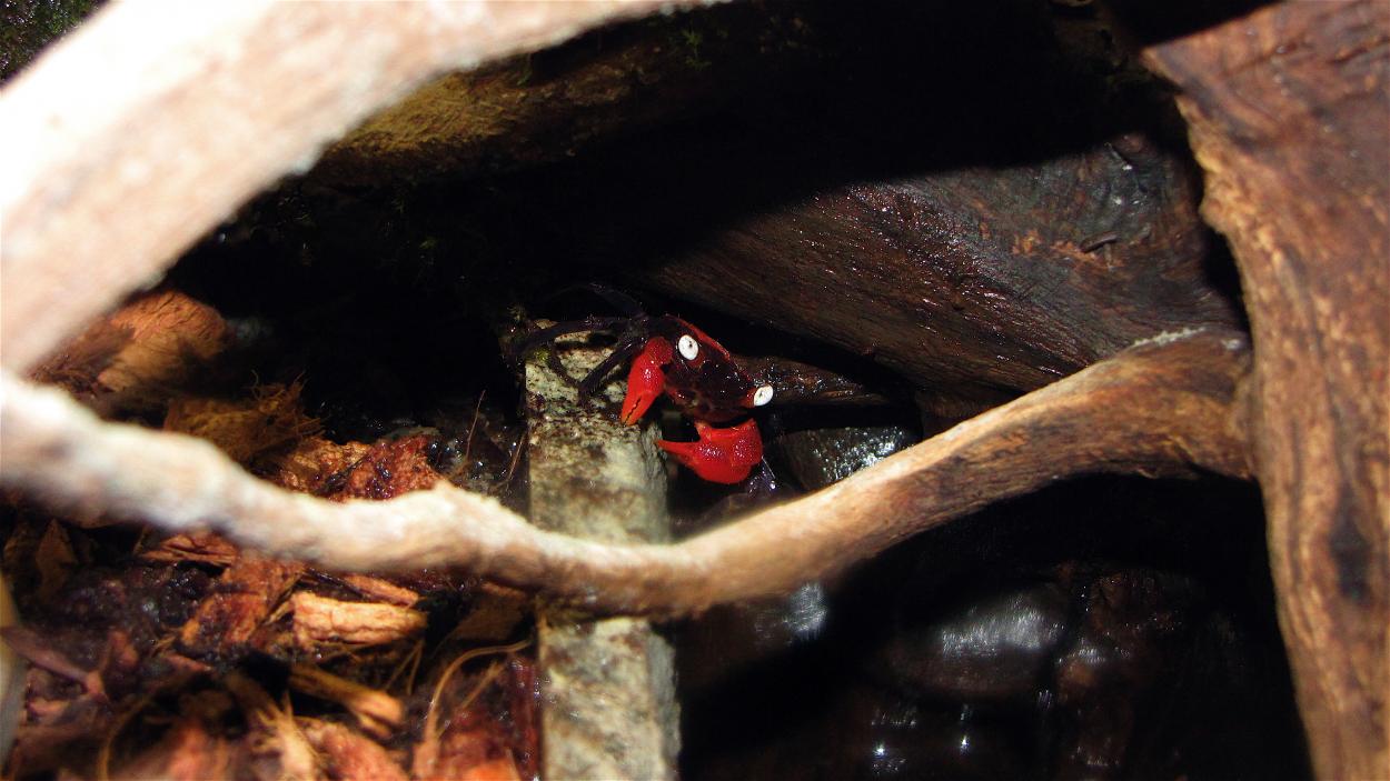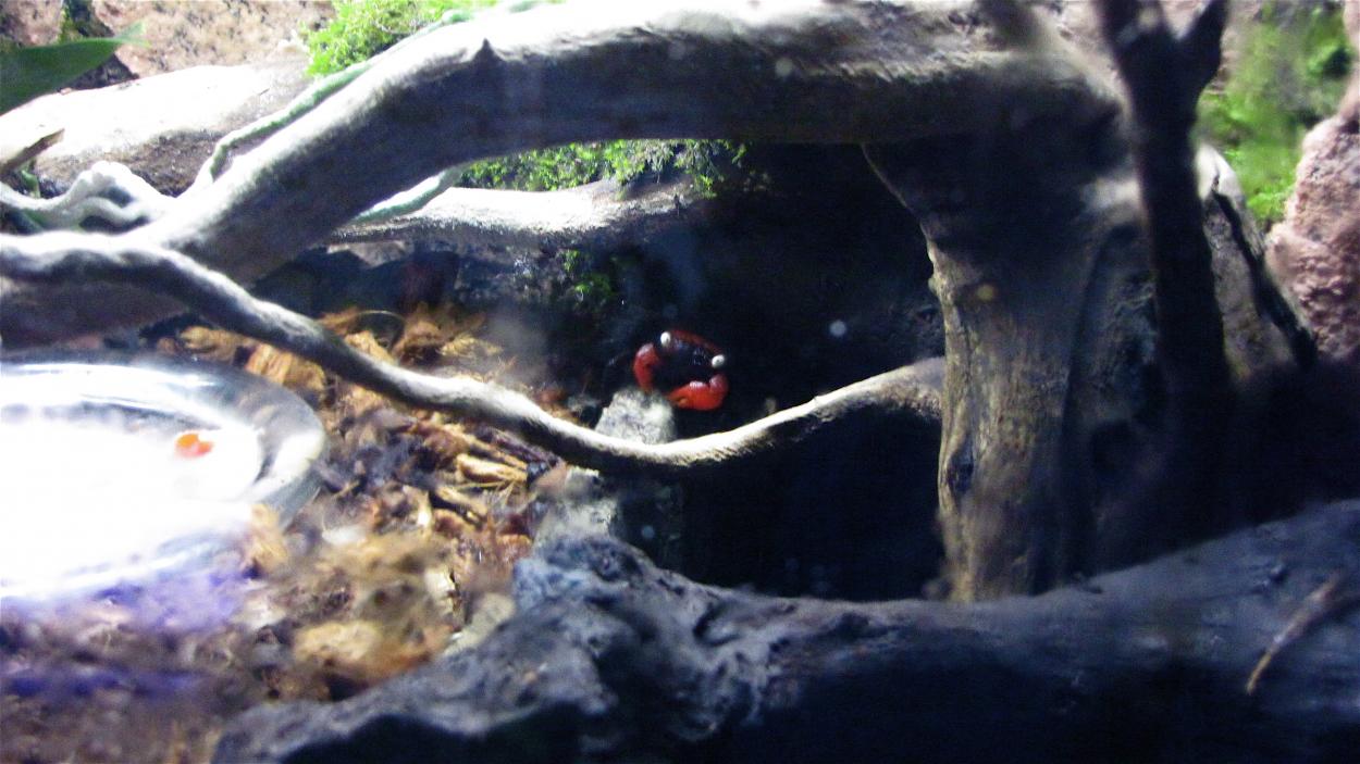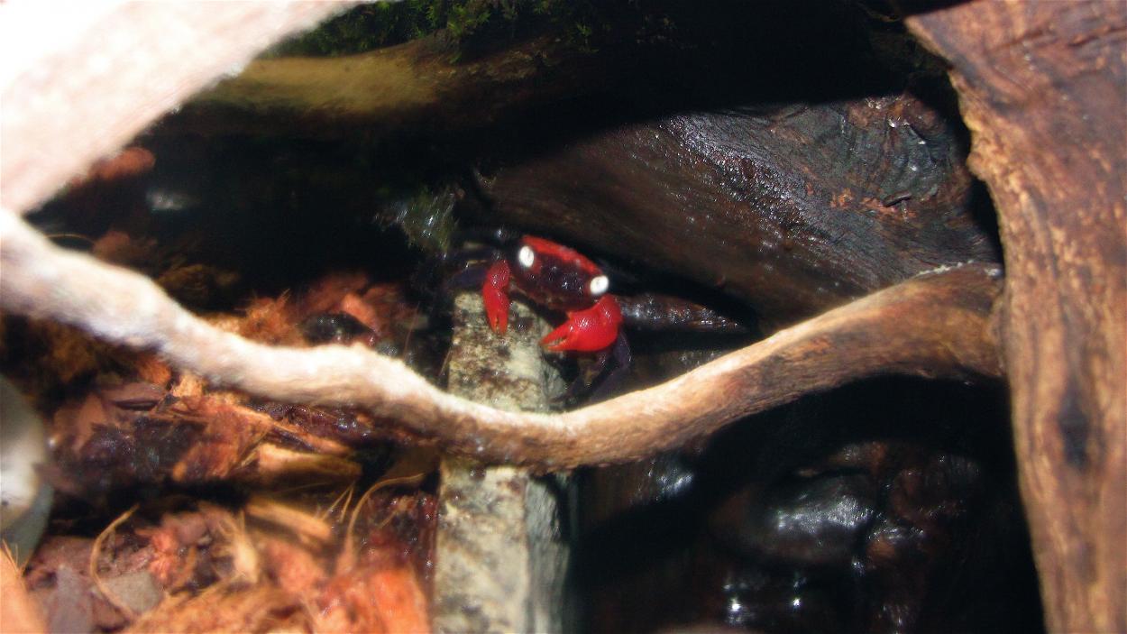 Jag såg krabborna käka för första gången igår kväll också - mosad potatis och krossad tomat blev tydligen en festmåltid för de små rackarna. Vampyrkrabborna är ganska skygga - men Red Devilkrabborna verkar lite mer framåt och inte så blyga. Det blir nog fler av dessa framöver.