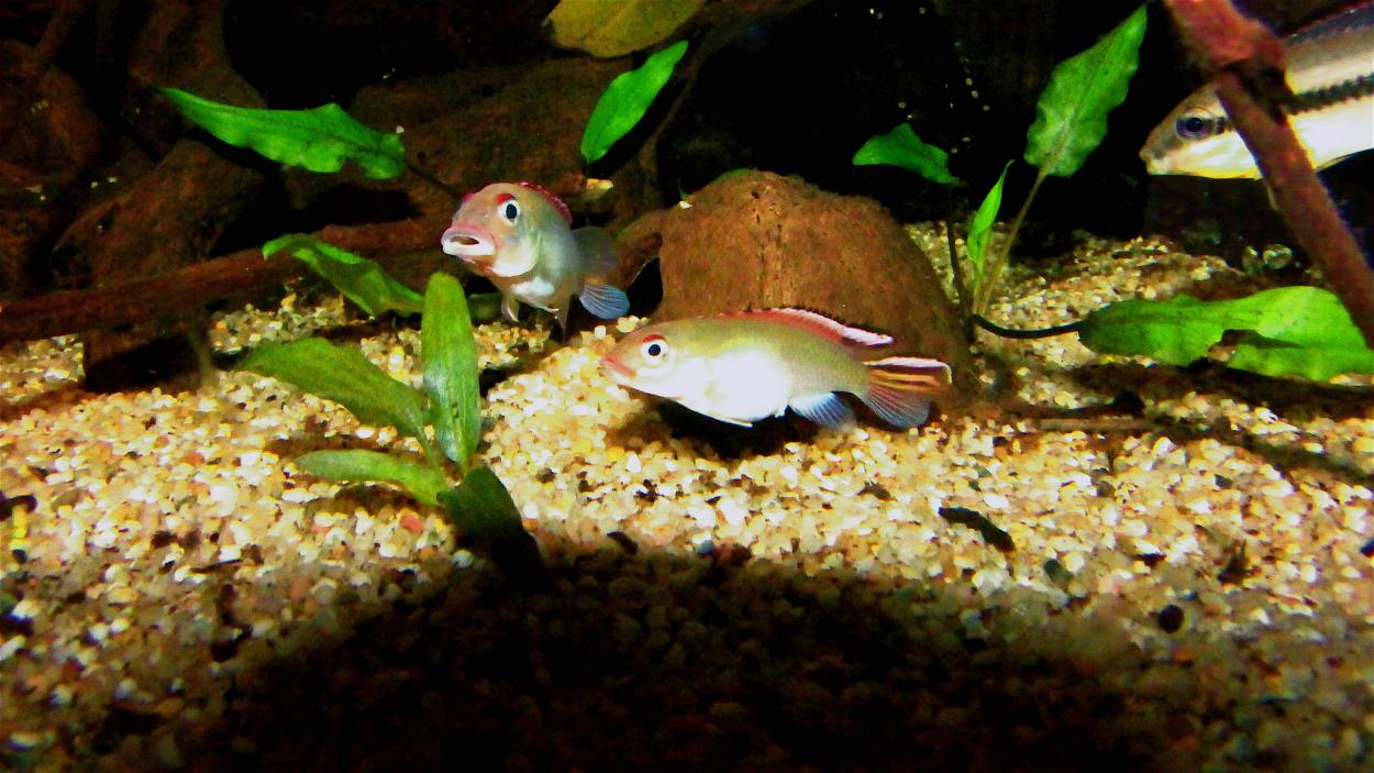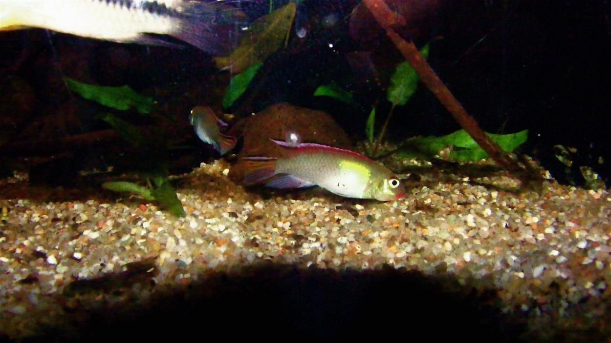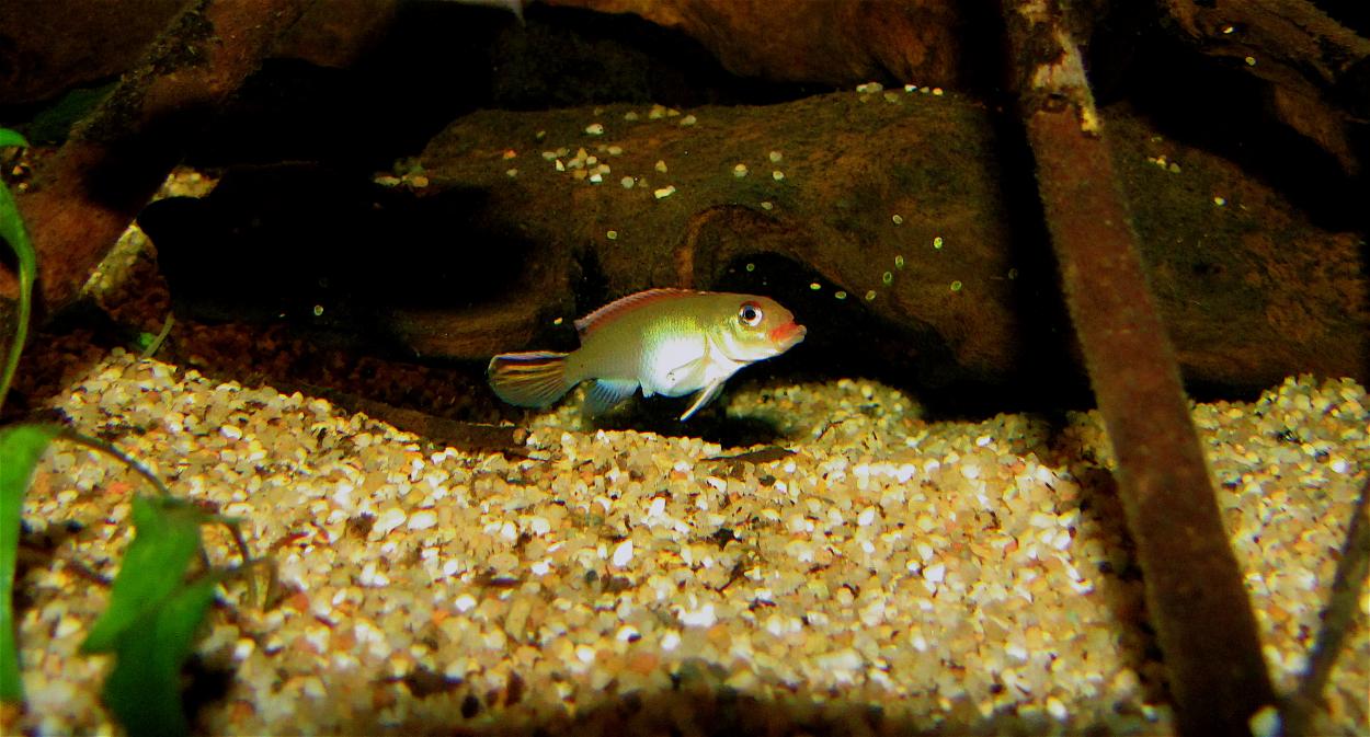 Flaggcikliderna hade kvar sina små "sprattlare" också - antagligen blir de frisimmande idag. Det största hotet är inte tetrorna dock, utan adoketahonan, som är förbannat intresserad av Flaggornas lek. Hon är i närheten hela tiden och stör... vi får se hur det går.