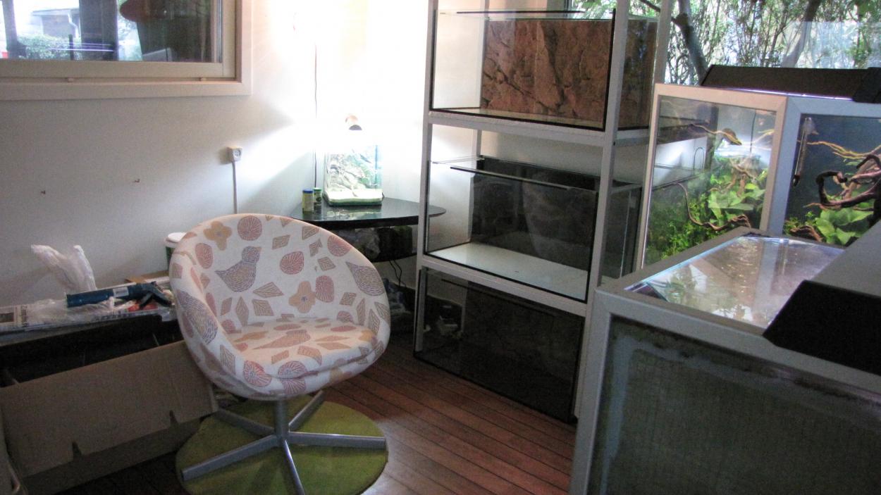 Perfekt fåtölj för 360 grader akvariespan. Kanske kommer låta så här hemma hos dig sen. "Nej han är i garaget - blir - nej han är ute i akvariestugan"