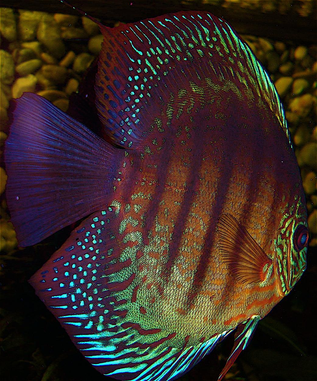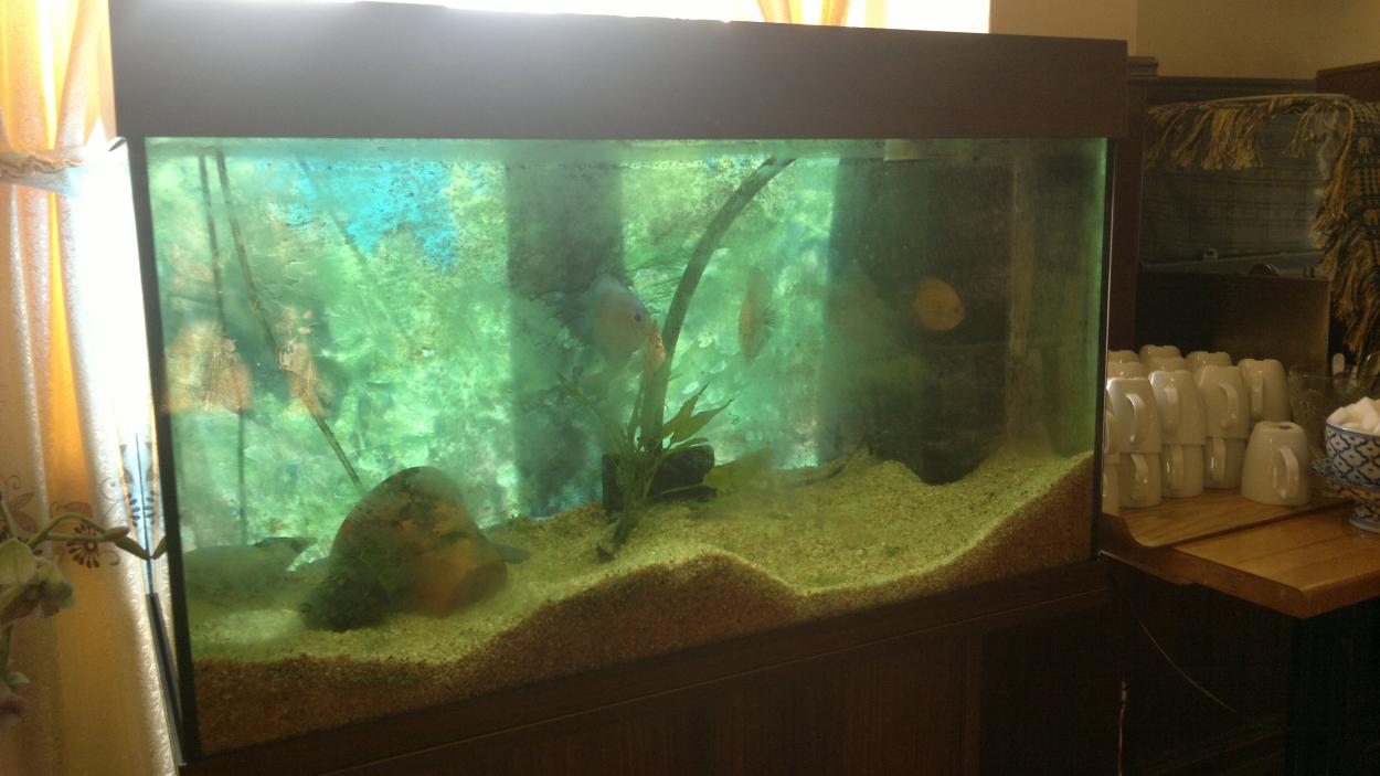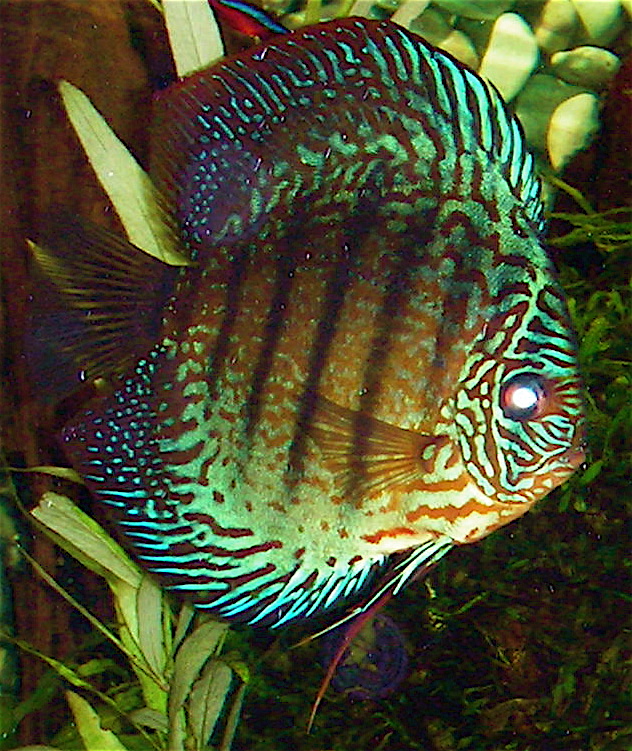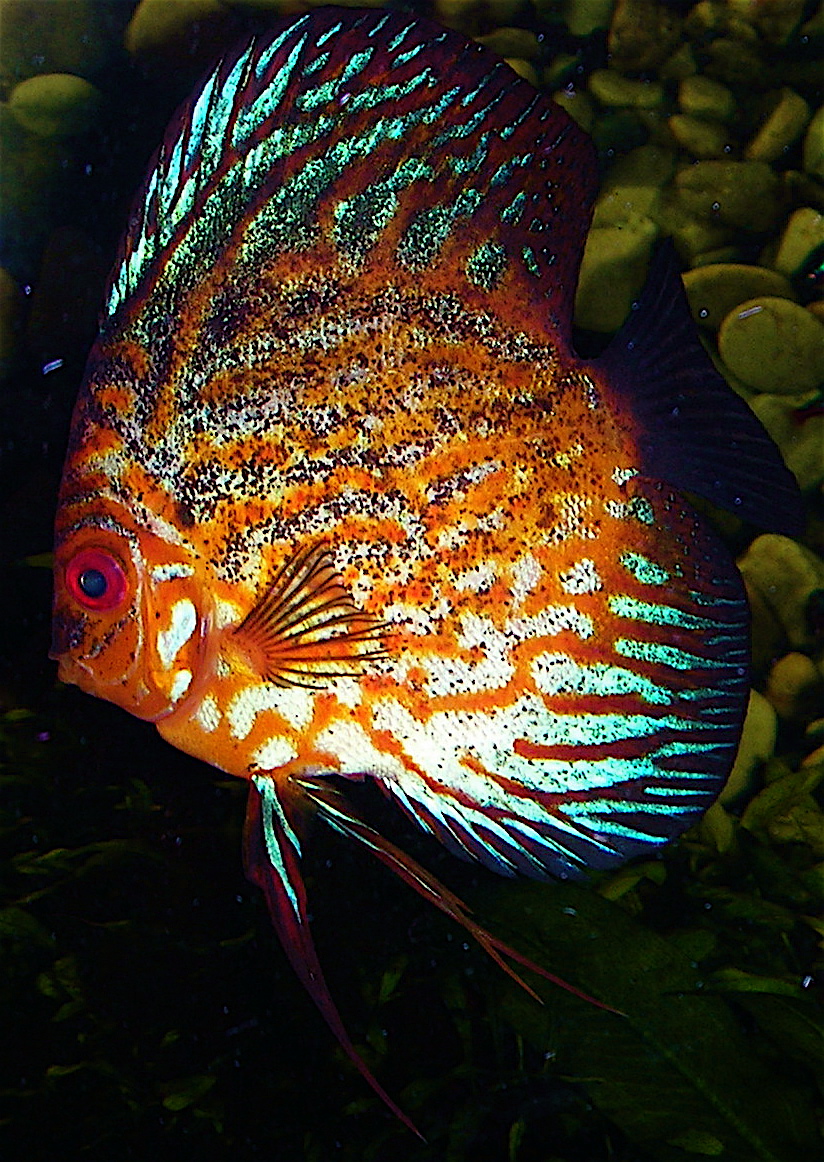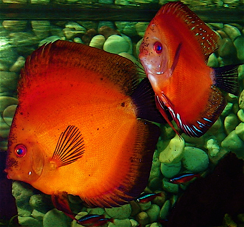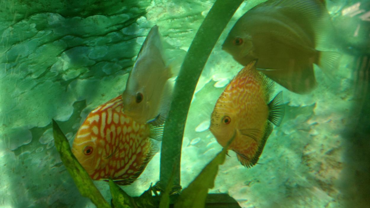 Jag tänkte på Bluewing-Johnnys Discusar och funderade på om jag kunde hitta de tidigaste bilderna på de jag startade upp med. Man hade en sketakass kamera, men för den tiden "modern" och digital dessutom. Man köpte ju Discus utan att egentligen ha så stor koll och sådant som "sot" tyckte jag bara var snyggt... Men sothönan var en formidabel moder trots alla hennes sotfläckar. Likadant var det med de röda discusarna - kanske inte världens snyggaste i kroppsformen, men jädrar vad de lekte och yngelvårdade.