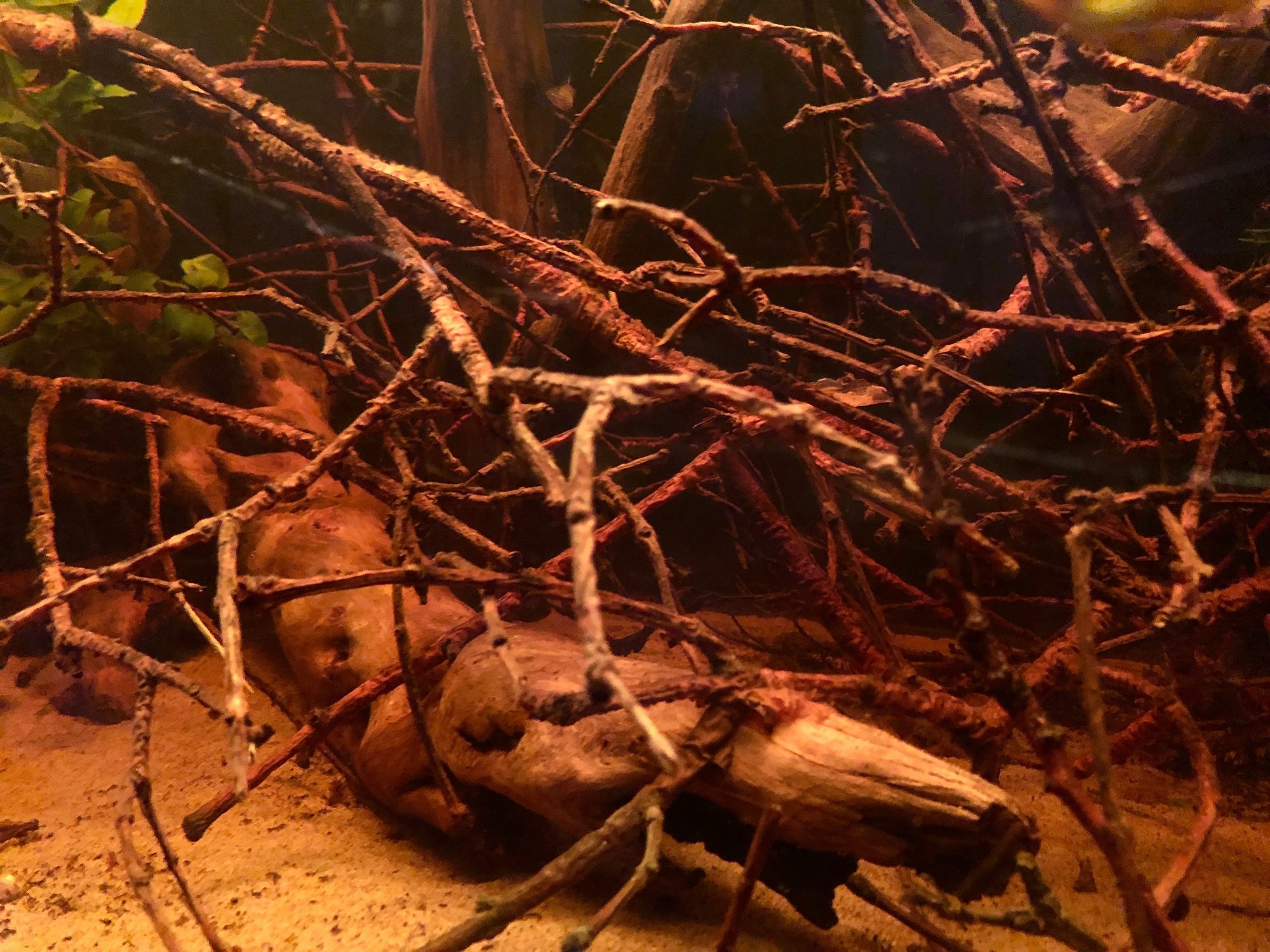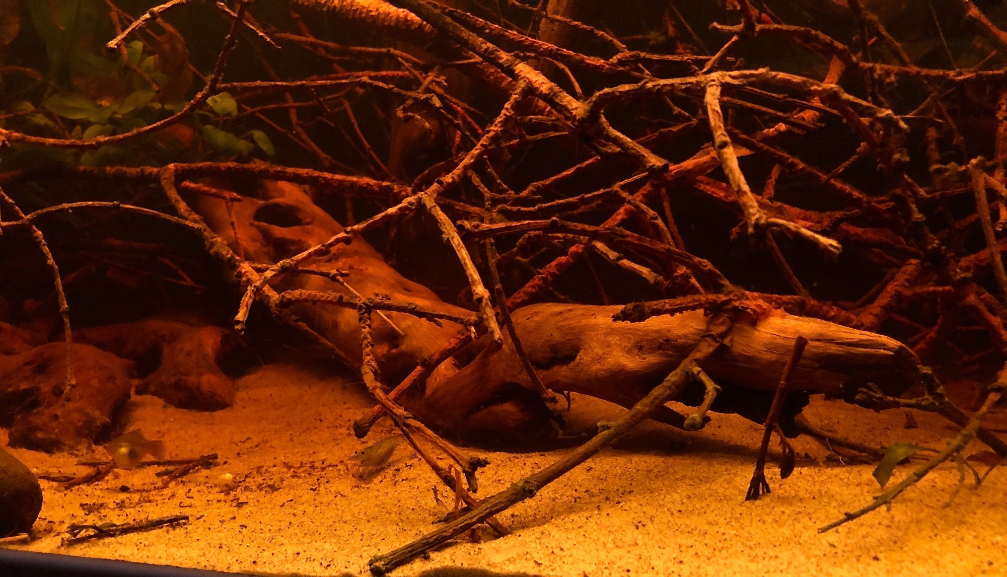Ytinredningen är under konstruktion och nu har jag lagt ett ”lager” grenar som skall få sjunka ner i karet en smula, för att senare täckas av ytterligare skikt där grenarna bryter vattenytan vågrätt.