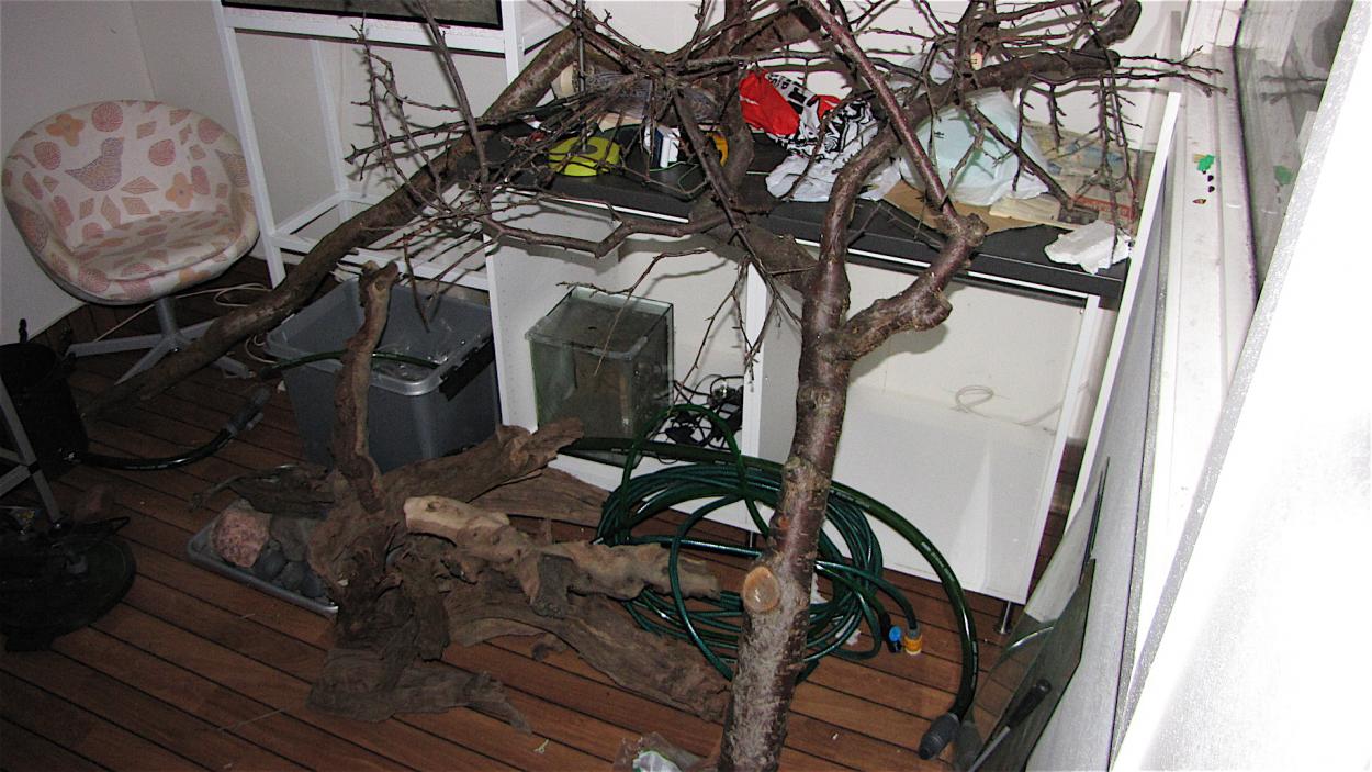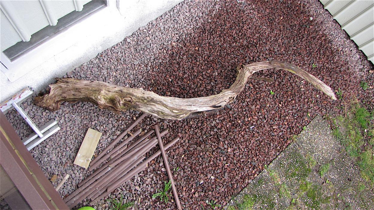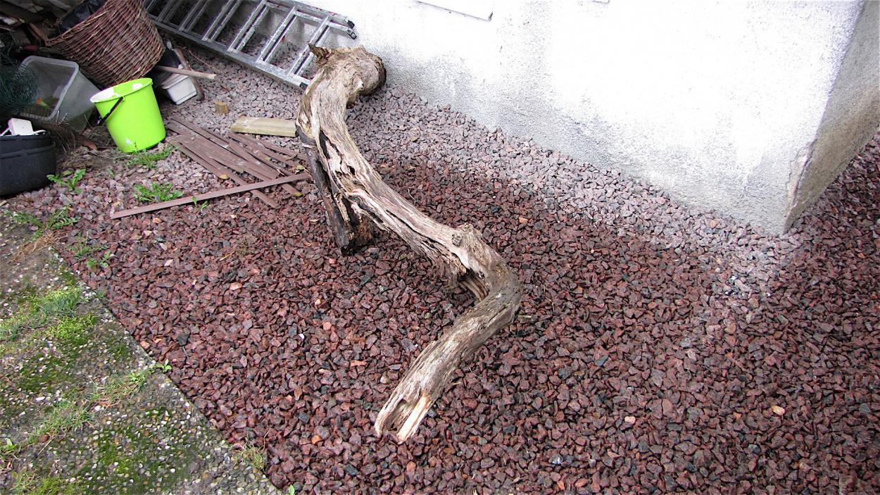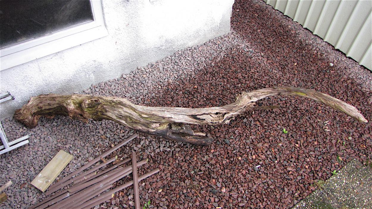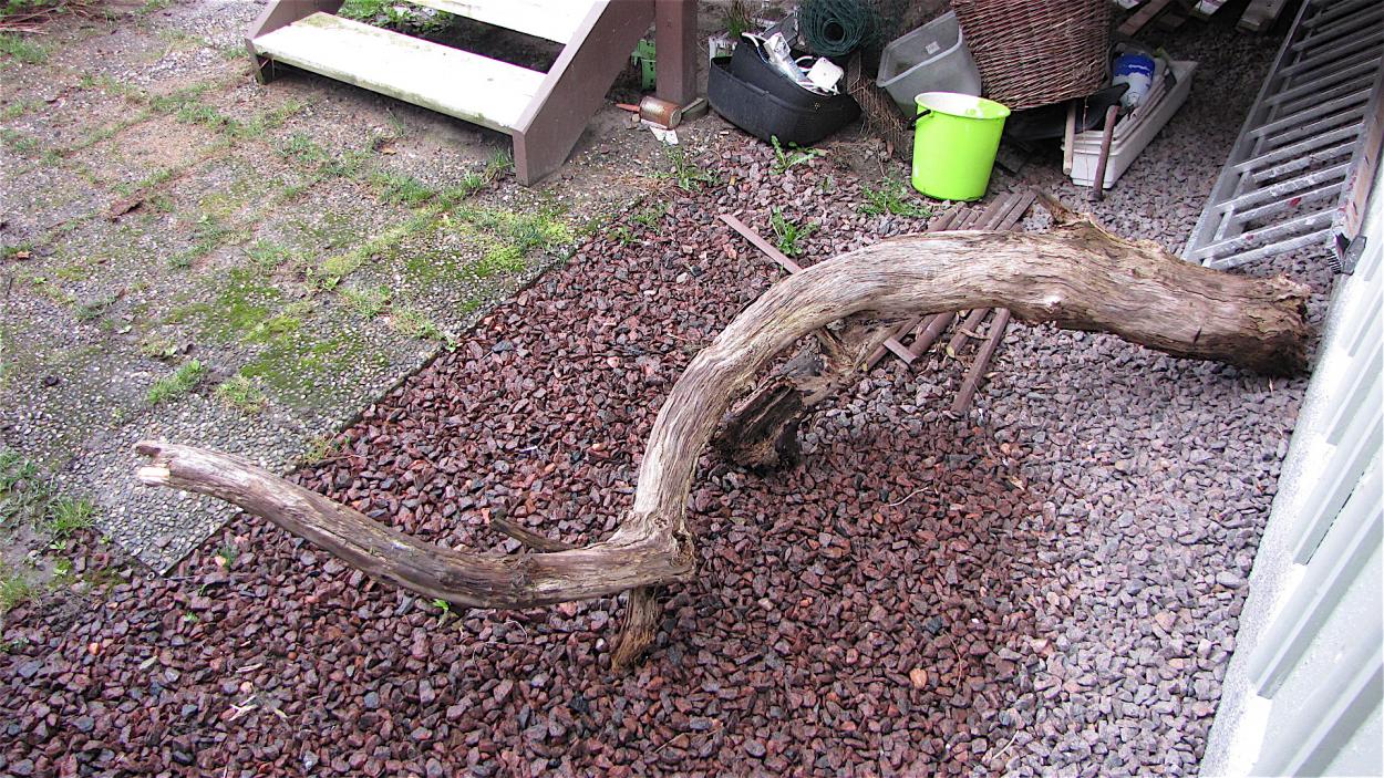 Knäppte precis några bilder. Jag har hittat en inredningskandidat som jag tror kan bli bra - satte den ovanpå den stora, långa trädstammen, och kanske kan man använda det greppet även i karet senare. Tog ett par bilder på stenarna som jag hittade - det finns fler, men jag tar upp dom senare, och två bilder på Vattenhyacinten i loppdammen. Den drar iväg fina slanor och har ett mycket snyggt rotsystem, som säkert kan komma att se fränt ut när man tittar in i karet.