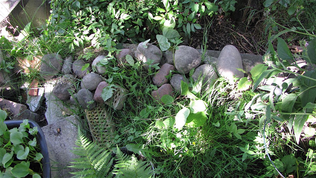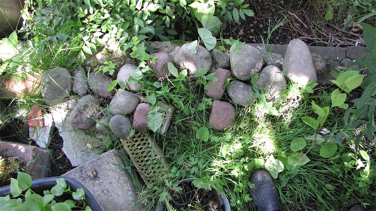 Nu när jag klippte gräsmattan hittade jag, i en gammal rabatt som förre ägaren till huset hade donat med, massor av kanonfina kullerstenar. Antagligen har dessa tjänat som någon slags kantsten runt rabatten innan den föll i glömska...