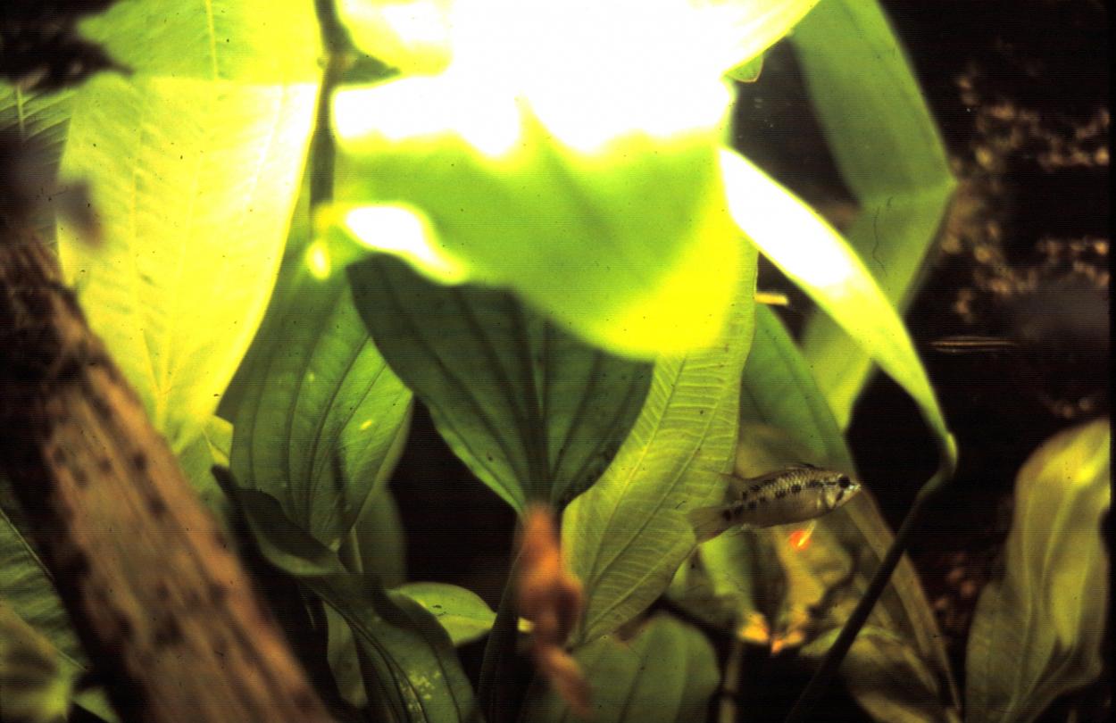 Mitt i karet stod en gigantisk svärdsplanta som i mitten skapade en lokal damm, där bodde mina Smycketera, med Altum väldigt nyfikna och hungriga runt omkring.