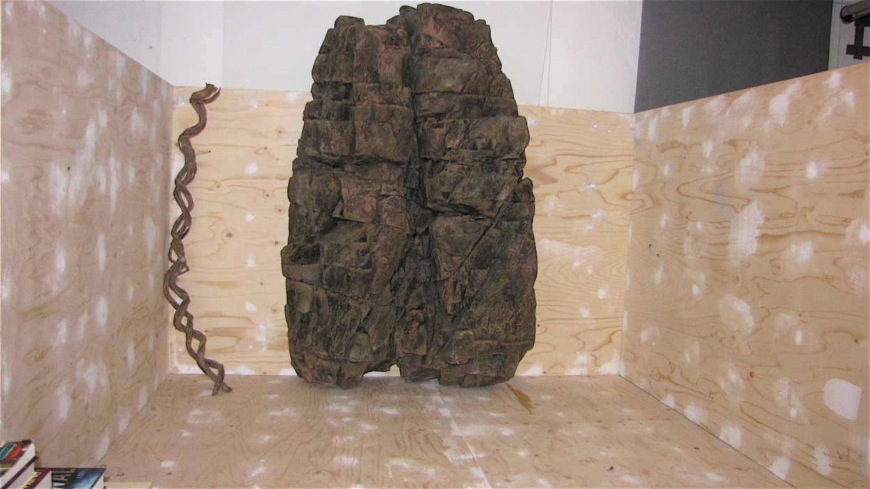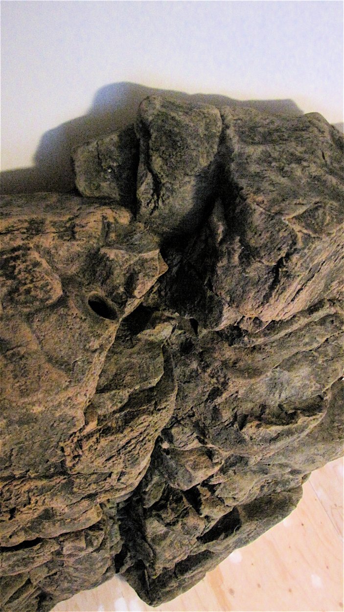 Om du fick tag i några rejäla korkbarks bitar skulle du kunna fästa dem i bakgrunden och "jobba vidare" med bakgrunden. De ger dessutom en del humus och är pH sänkande.Med goda idéer är det som med svamp; där man hittar en finns det ofta flera
