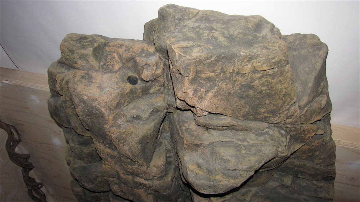Faktum är att din idé om att låta bergväggen stå rakt upp tål att tänkas på. Kan man på något sätt täcka vattenytan runt omkring men samtidigt låta ett "vattenfall" få porla ner i karet, så varför inte?