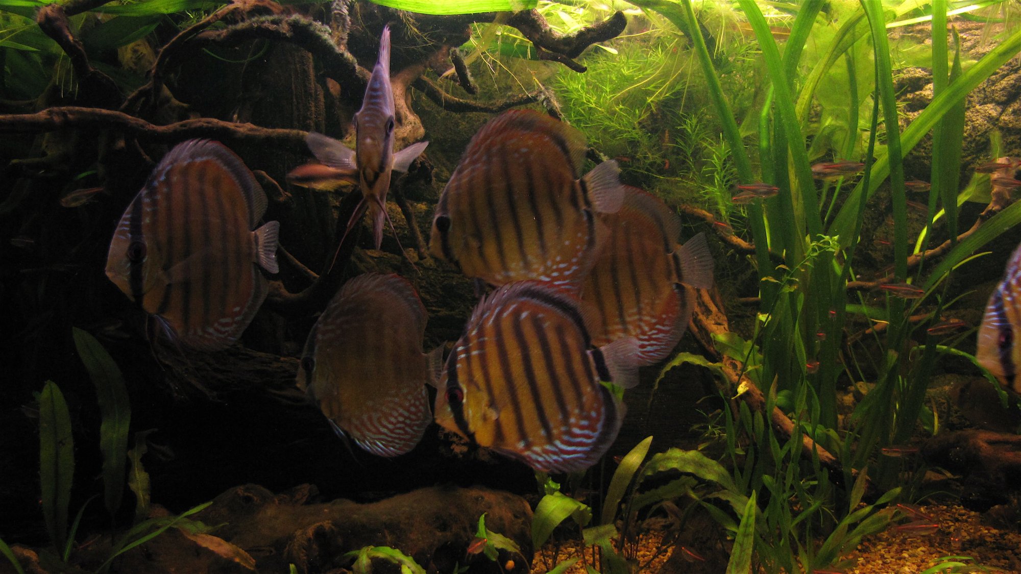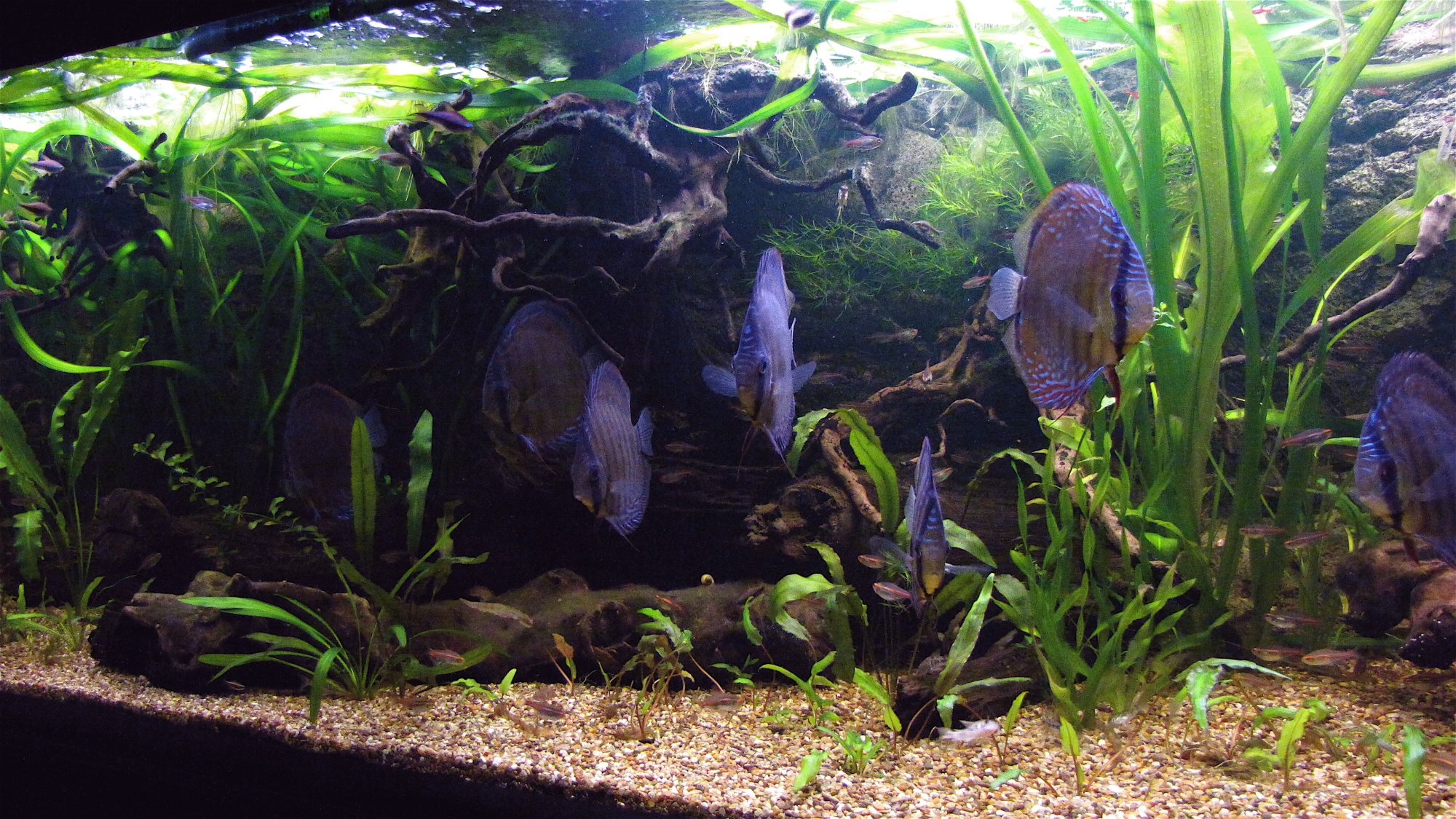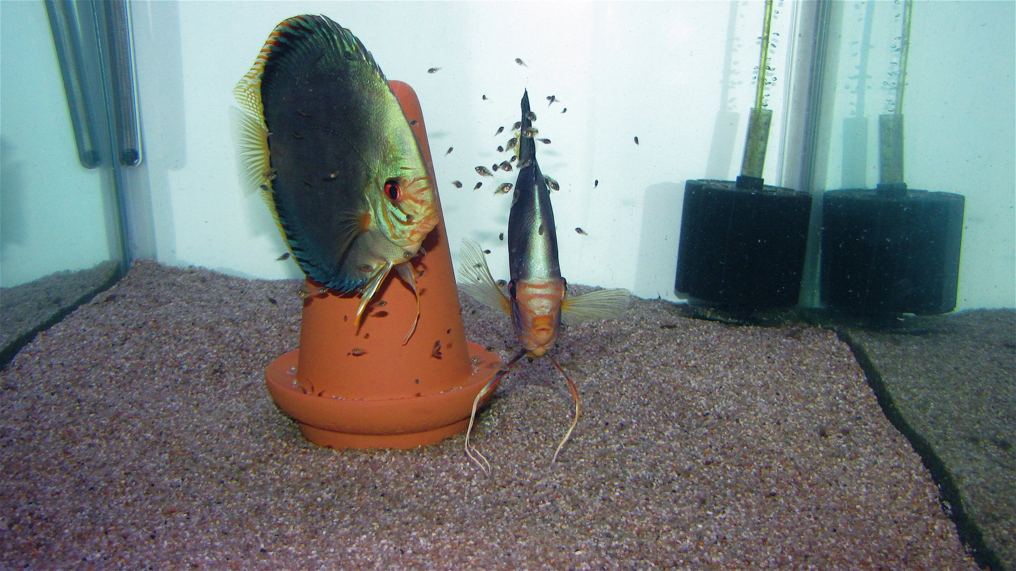 Min inställning är att ynglen får gå hos föräldrarna så länge de kan. Oftast stryker merparten med efter ett tag - blir uppätna av andra fiskar, främst andra discusar.