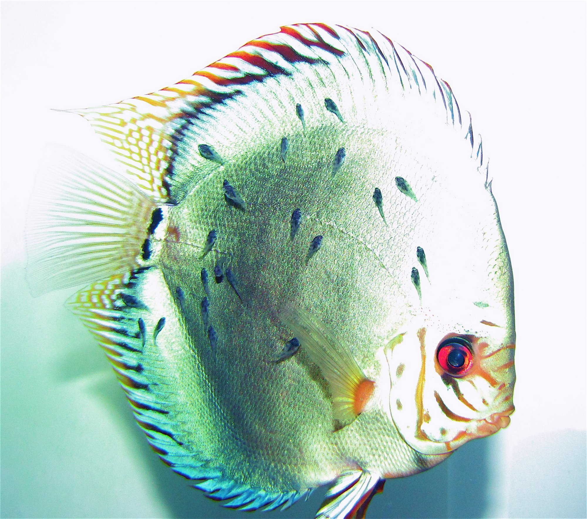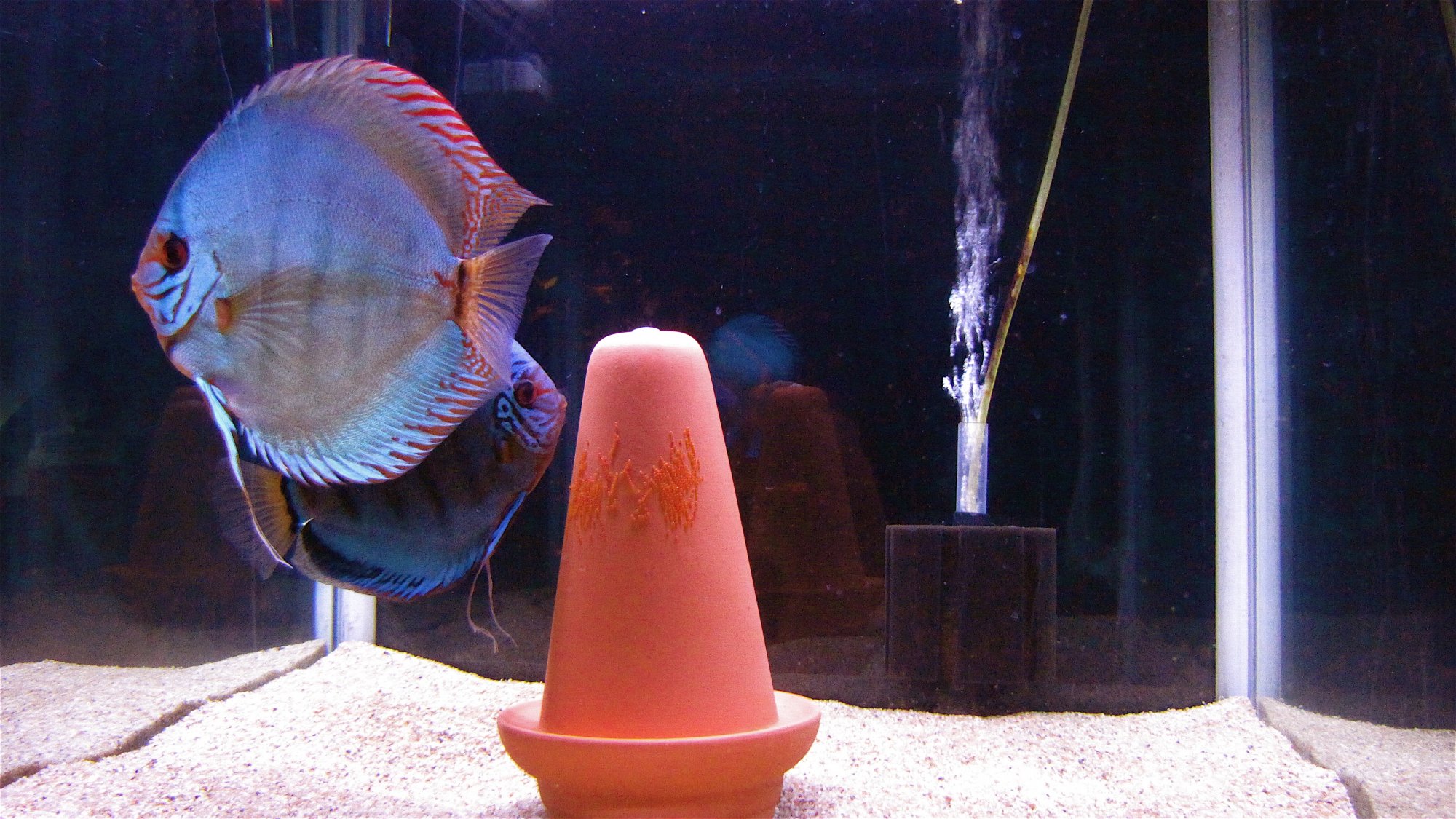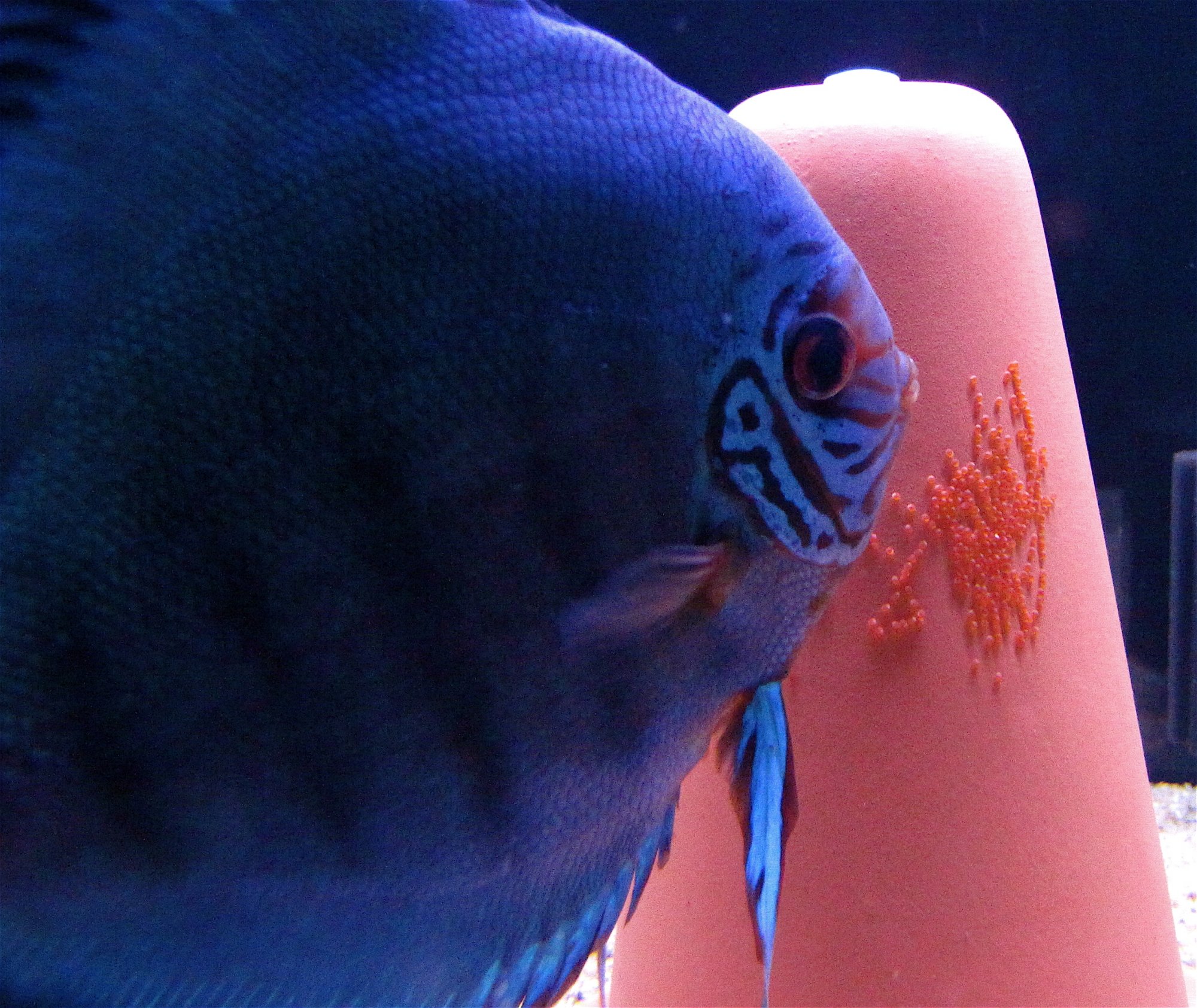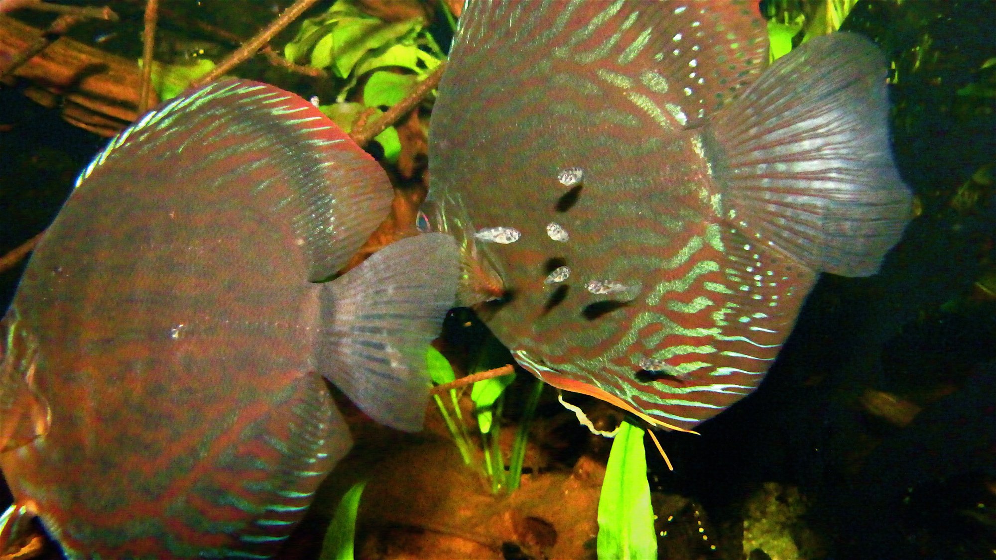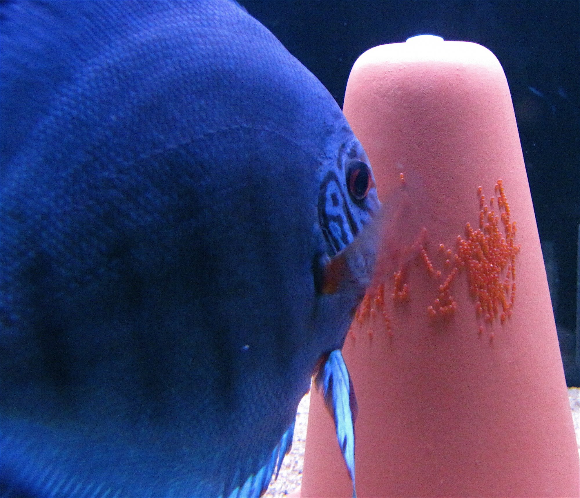 Många yngel från detta par klarade sig vidare. Jag har en kompis, Bosse, som i perioder drar upp lite Discus hemma. Han har fått Solid Turk-, och Röd Turk-yngel när de blivit ett par centimeter stora.