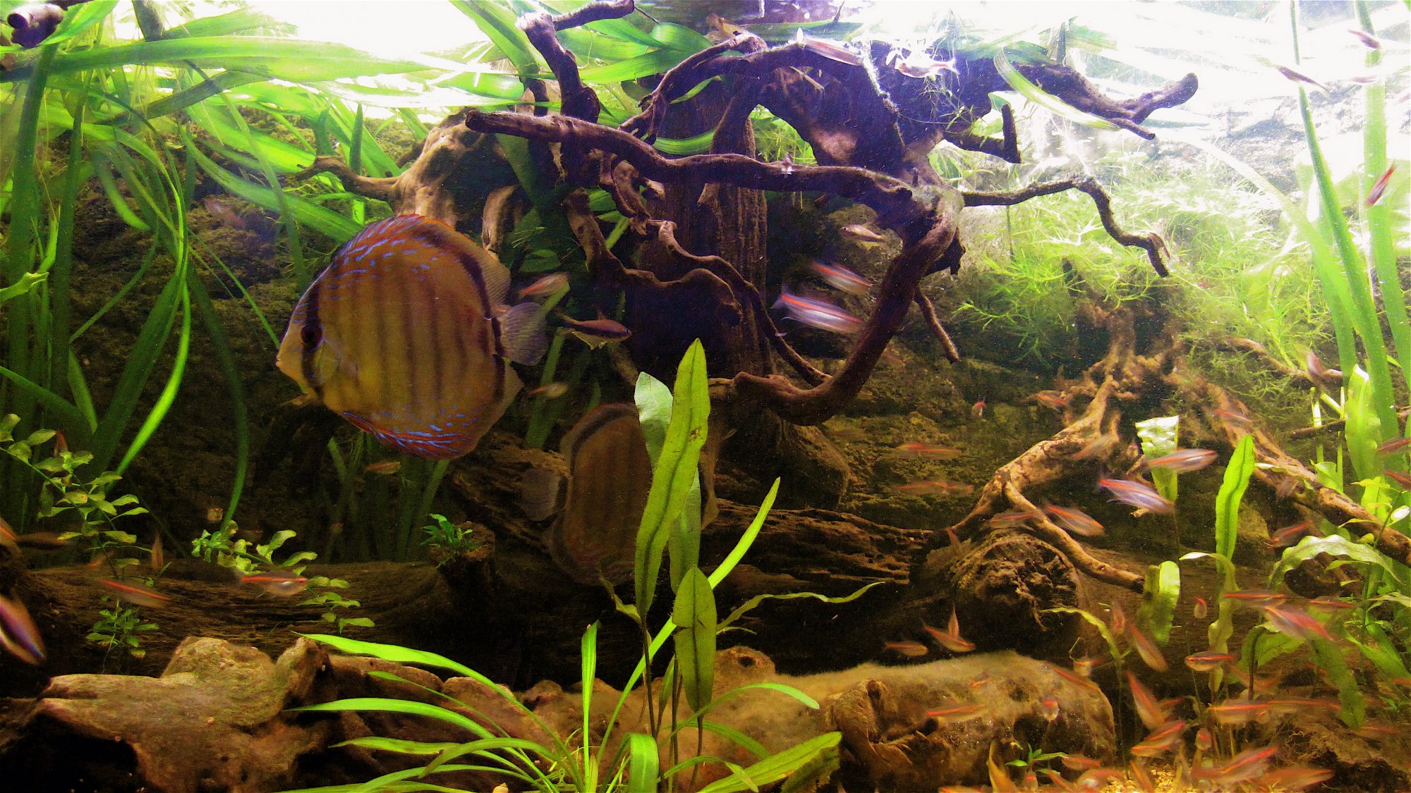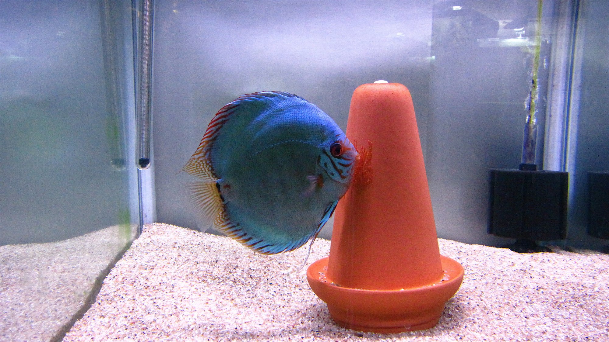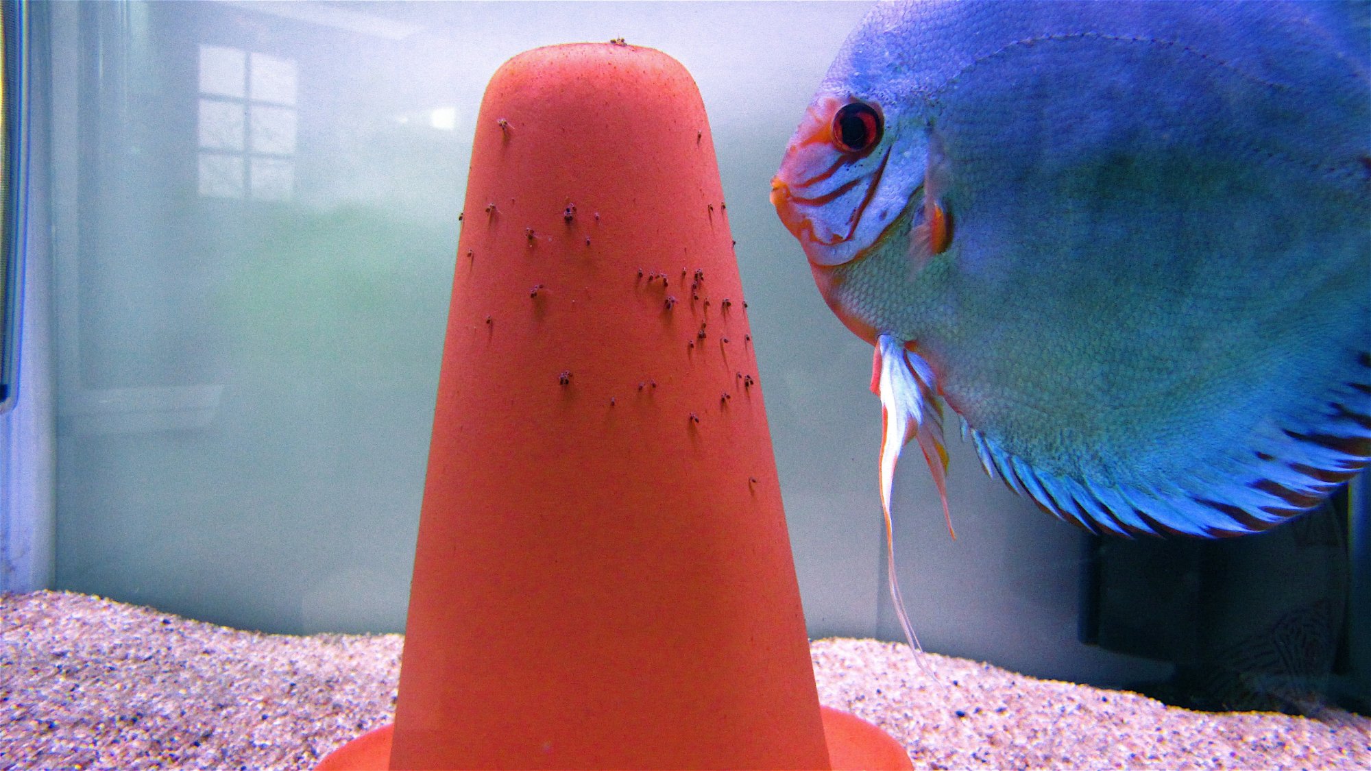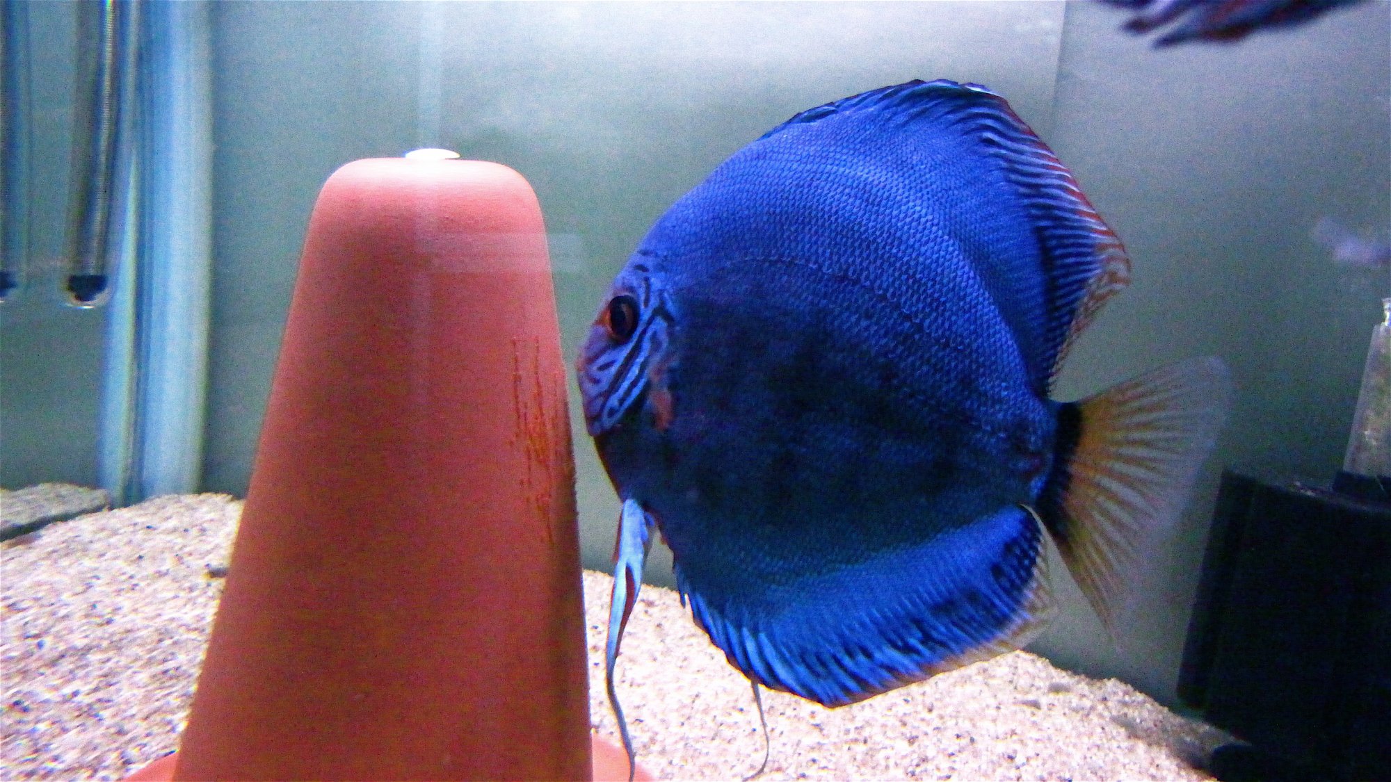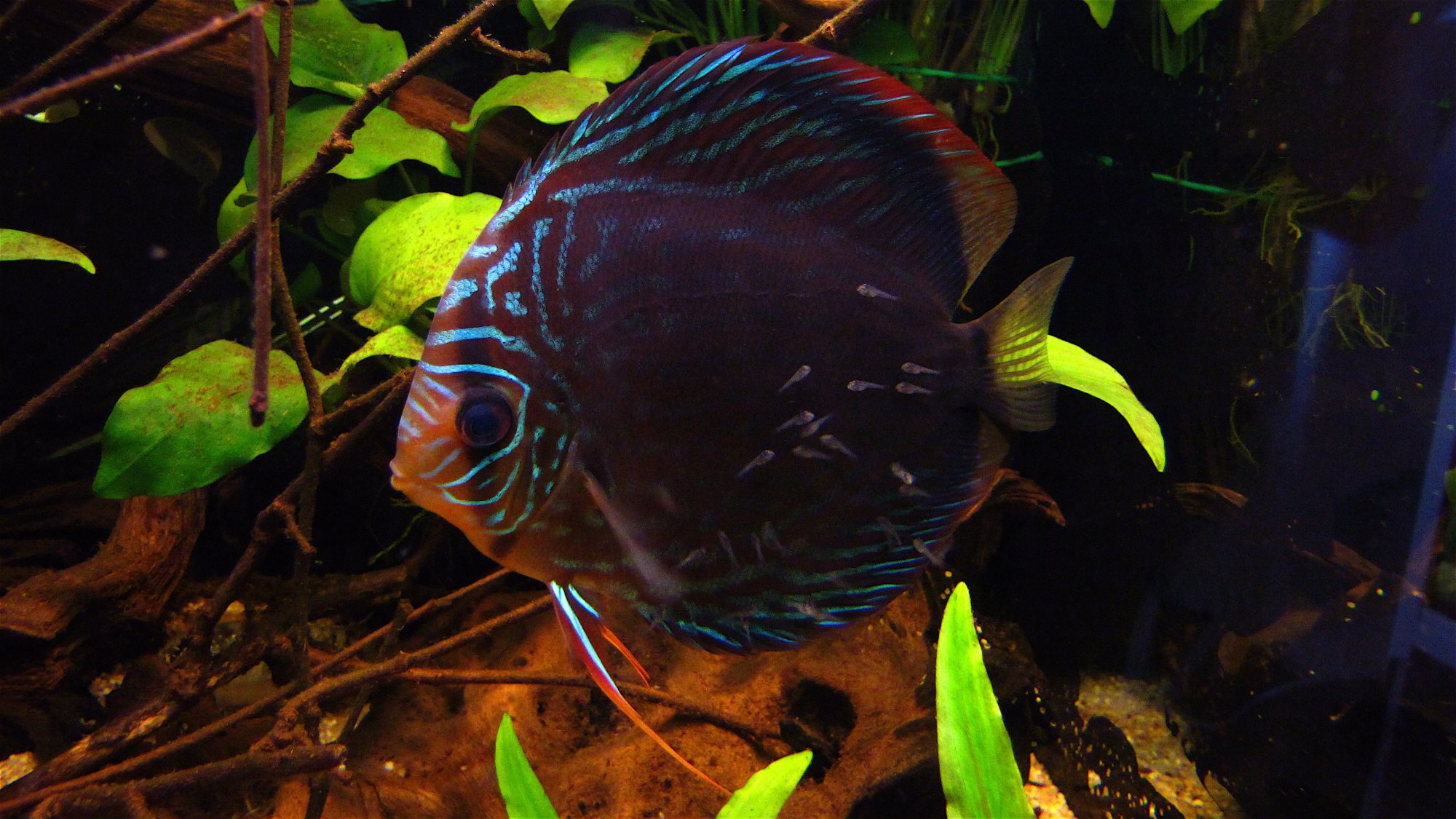 Många yngel från detta par klarade sig vidare. Jag har en kompis, Bosse, som i perioder drar upp lite Discus hemma. Han har fått Solid Turk-, och Röd Turk-yngel när de blivit ett par centimeter stora.