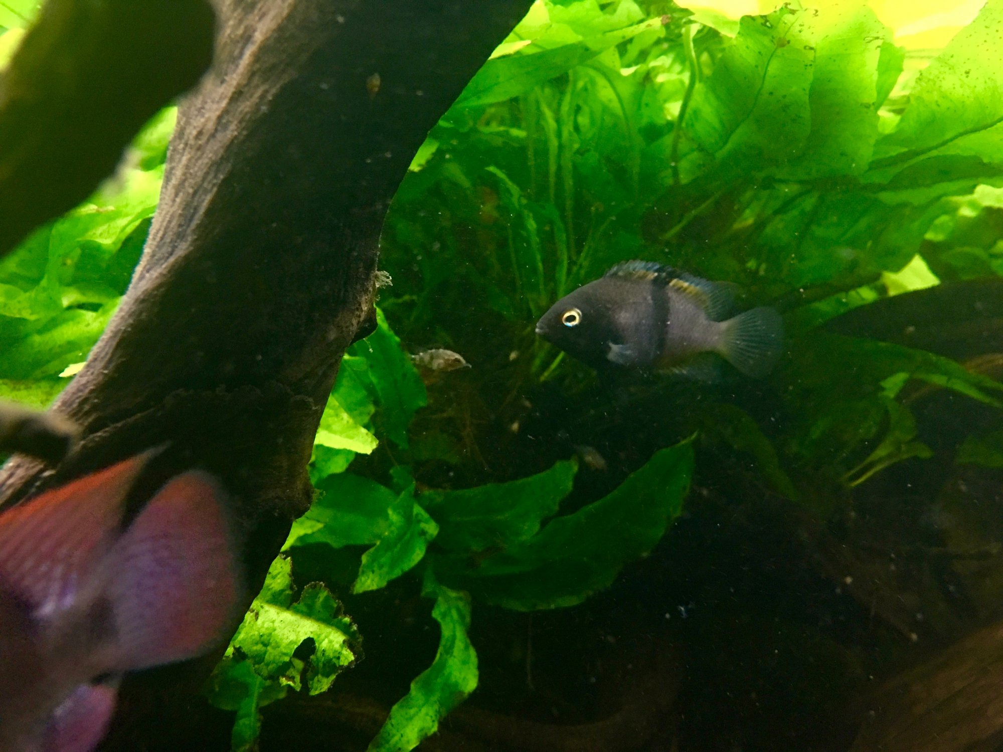 Dina är väl hyfsat stora nu? Men kanske fortfarande i lagom storlek för att bli scalaregodis, samtidigt som de väl dessutom börjar bli mer självständiga, och därmed lättare byten? Men de verkar ha en del gömställen Tror nästan scalarerna får flytta, medan de har några fenor kvar, och dessutom ökar ju ynglens överlevnadschanser då.