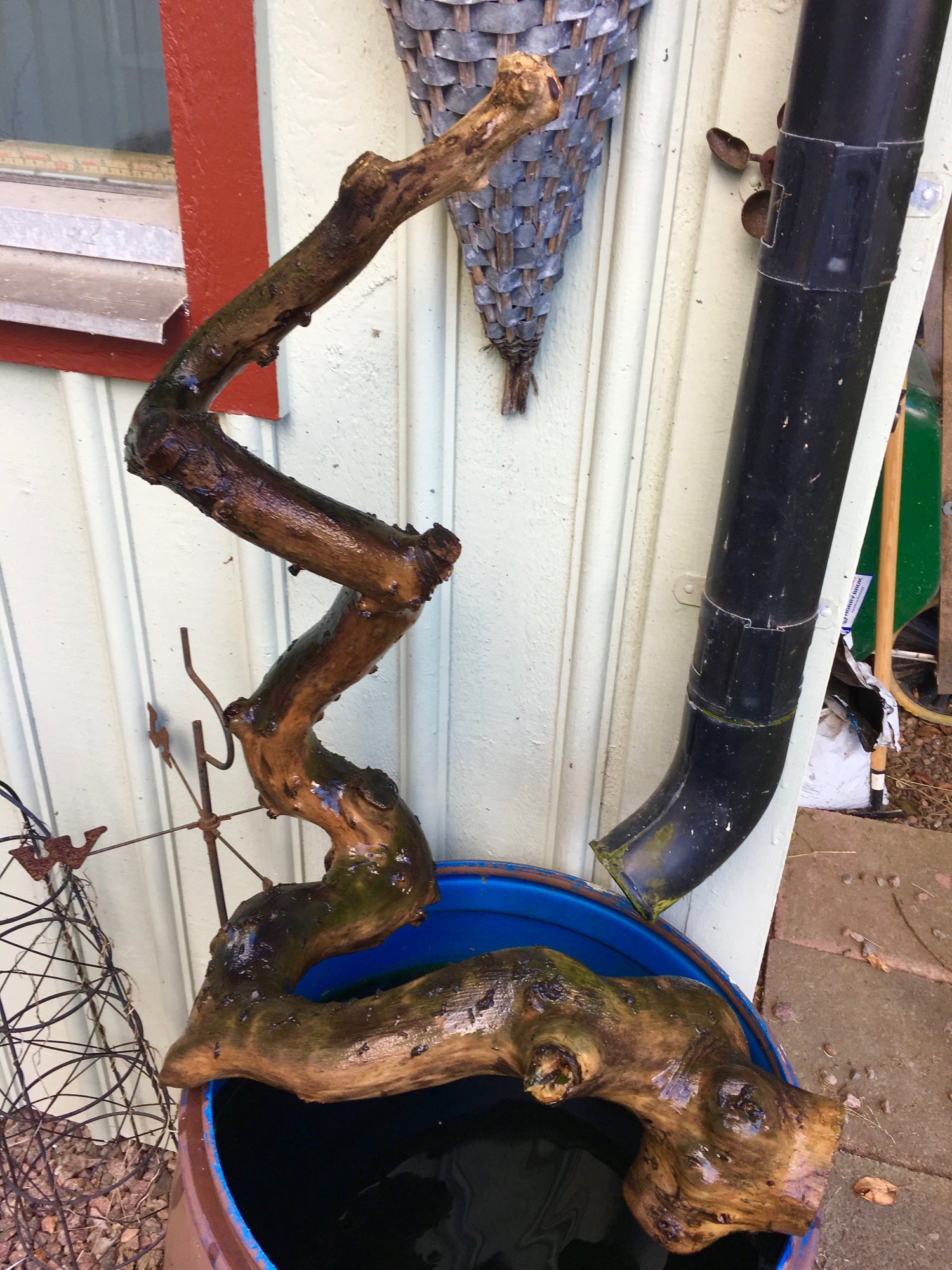 Aha, efter cirka ett halvår i vattentunnan, för vattenmättning, har det så blivit dags att använda den över en meter långa hängalmsgrenen som jag nappade åt mig förra sommaren.