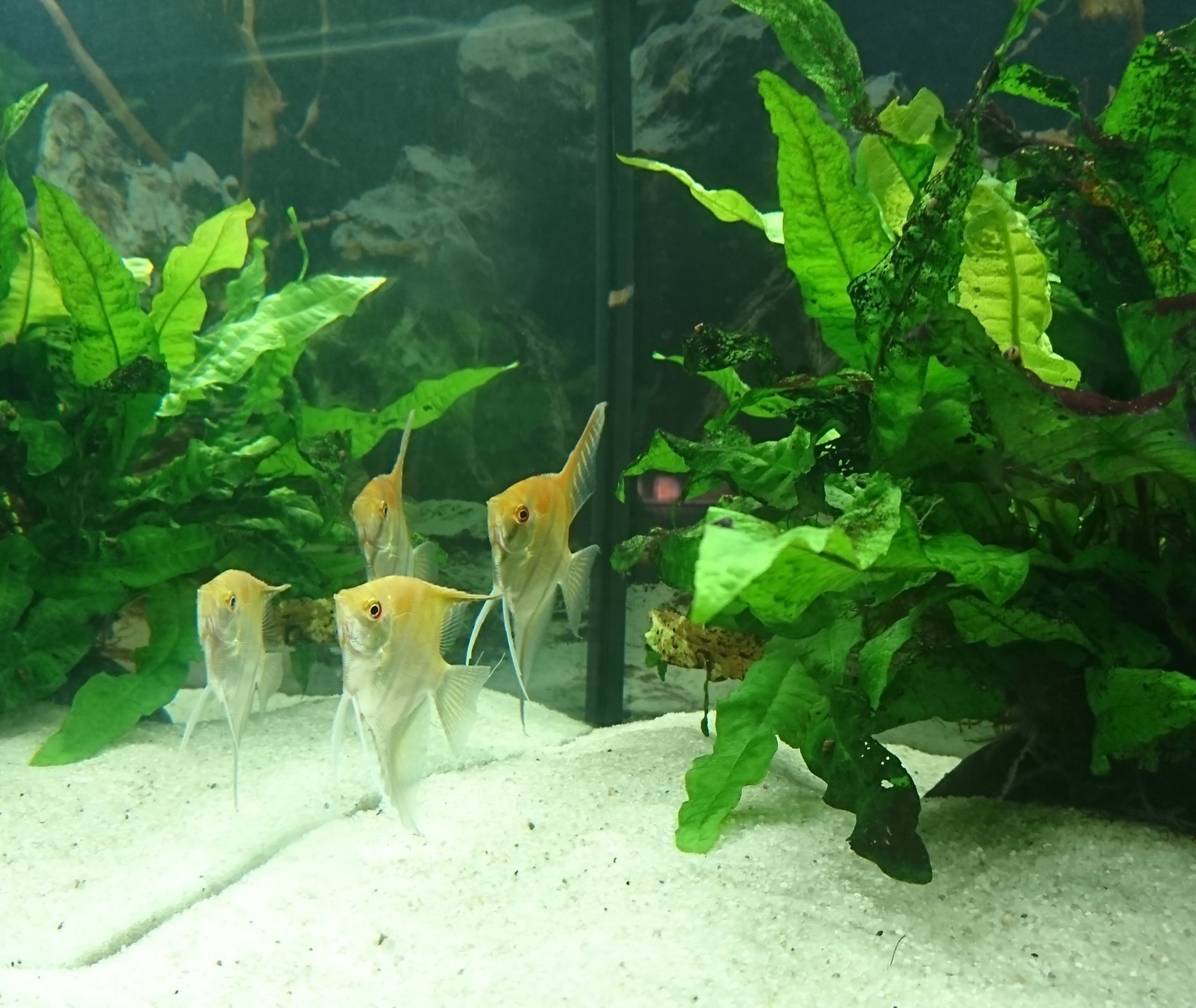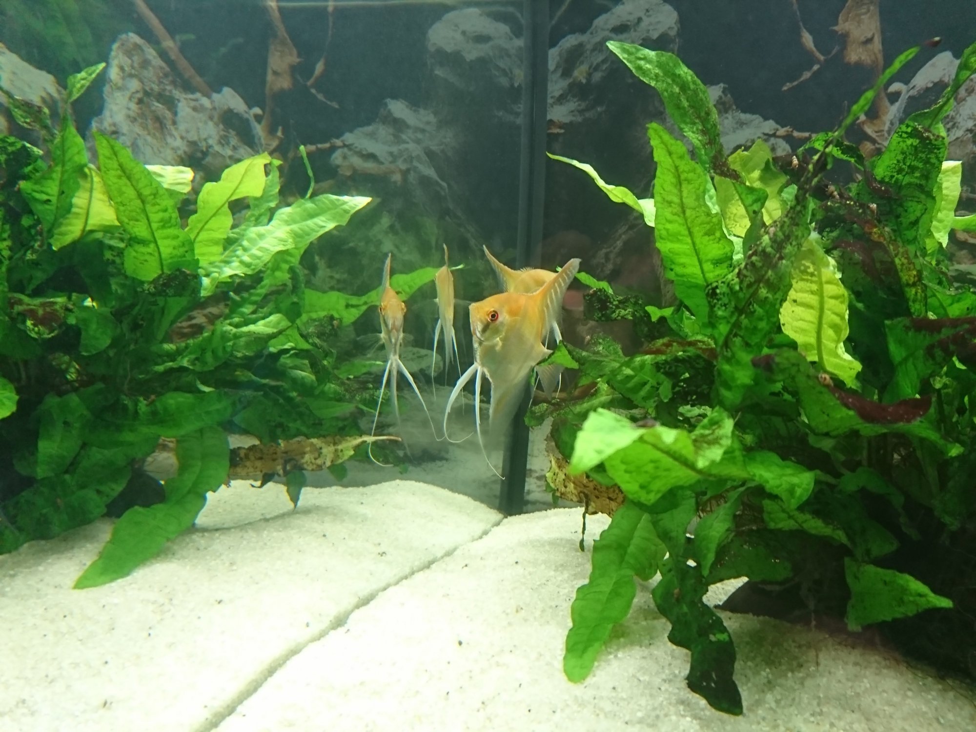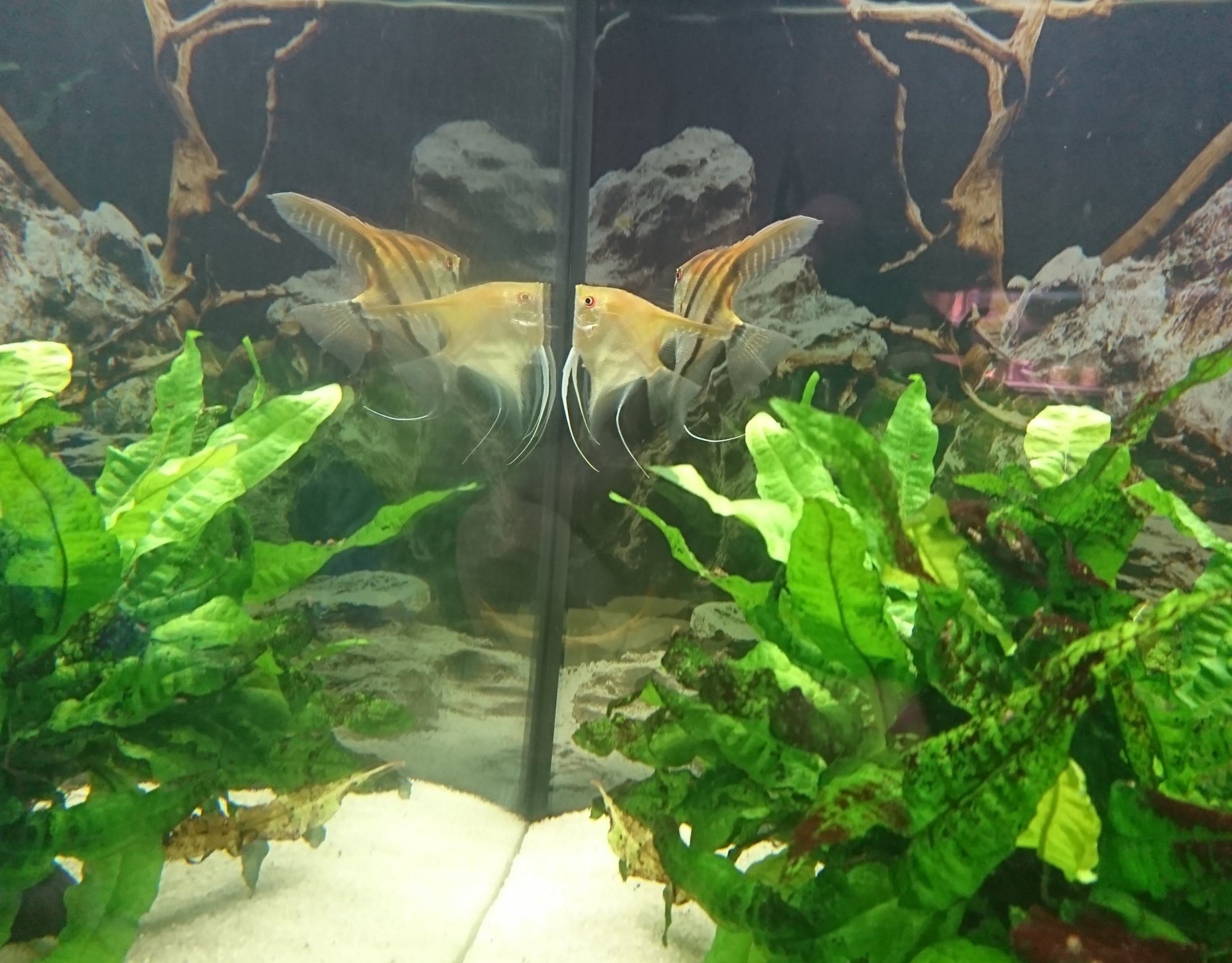Apropå scalarer och genetik, har ett platinumpar i ett annat kar, skulle vara kul att veta hur man fått fram den varianten. Antar att de, till skillnad från svarta som har överdrivet mycket melanin, saknar melanin, men inte tillräckligt för att bli albinos, ungefär som hos den vita zebracikliden.