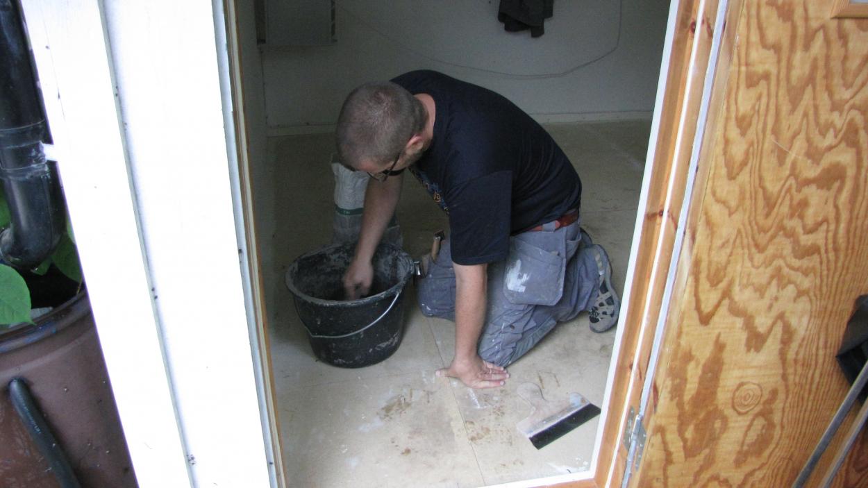 Min gode vän på Zoopet och i verkligheten, Anders, eller som han kallas här; Ansjo, har varit hemma hos mig och lagt ett våtrumsgolv i gäststugan och det är bara att bocka och buga Vilket fantastiskt jobb!