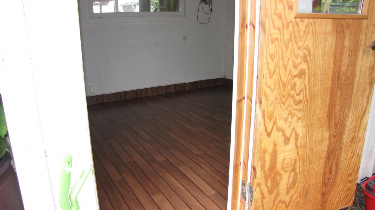 Nu, till att börja med, slänger jag in några bilder på stugan, Ansjo och hur det såg ut när det nya golvet blev lagt.