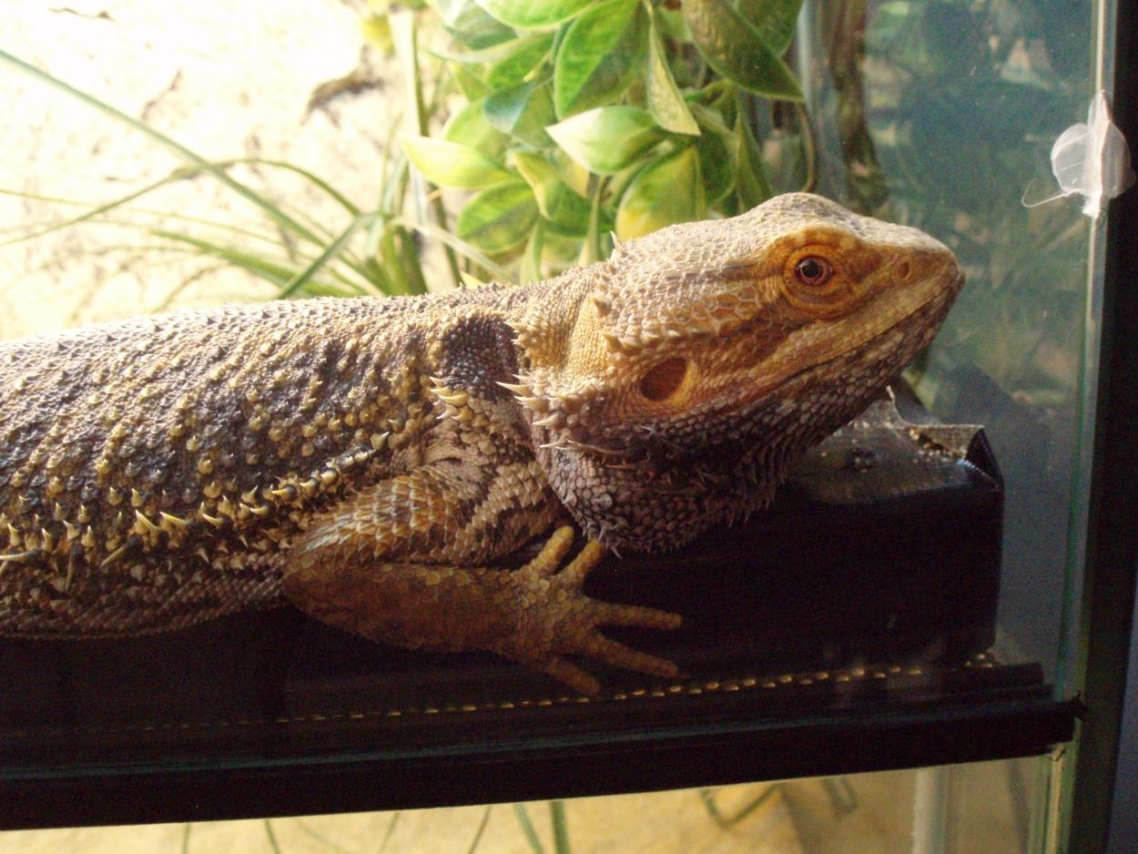 en förbryllad Rex, han vet inte om det är natt eller dag när jag släcker terrariet för att kunna fota (och ändå blir fotona inte så bra