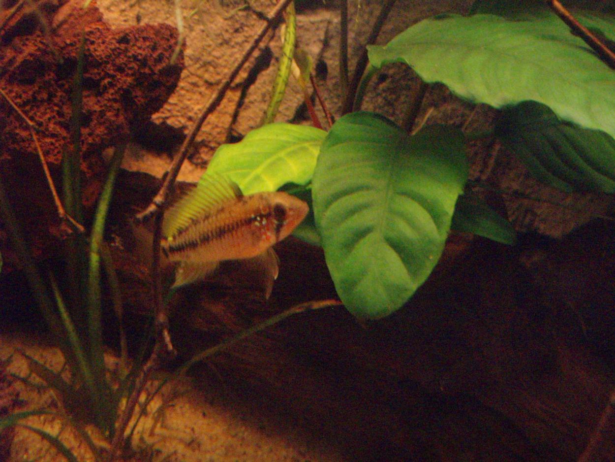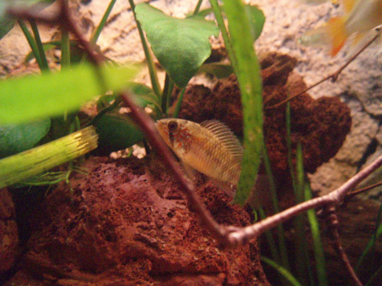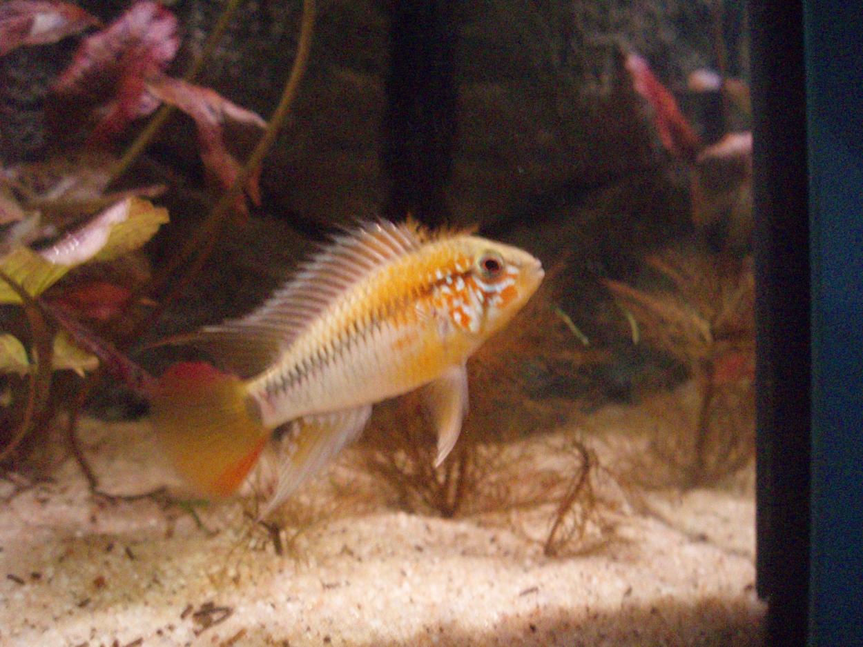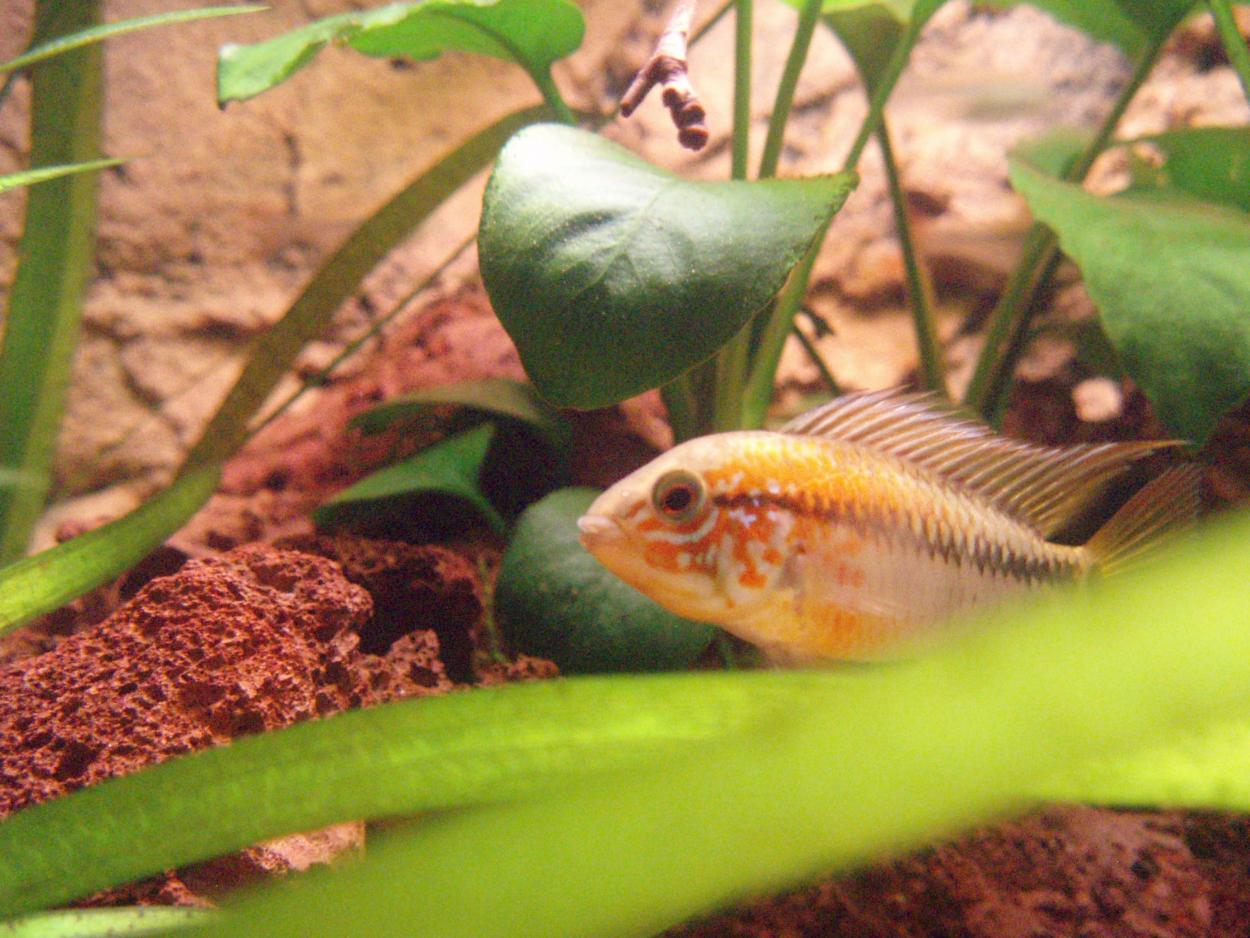 Mina bibukar dog rätt snabbt, men det var i Dödskaret (på Aftonbladet-manér) samt att zebrafiskarna tyvärr trodde de var nya lekkamrater. Veka men ack så häftiga!jag har skrivit många gånger att jag tror att det är lek pågång hos dvärgcikliderna, men dom har givit mig tecken på att något är pågång. men nu har honan fått en orange färg, och för att inte göra några falska uttalanden så säger jag inte att det är ett tecken på lek.
