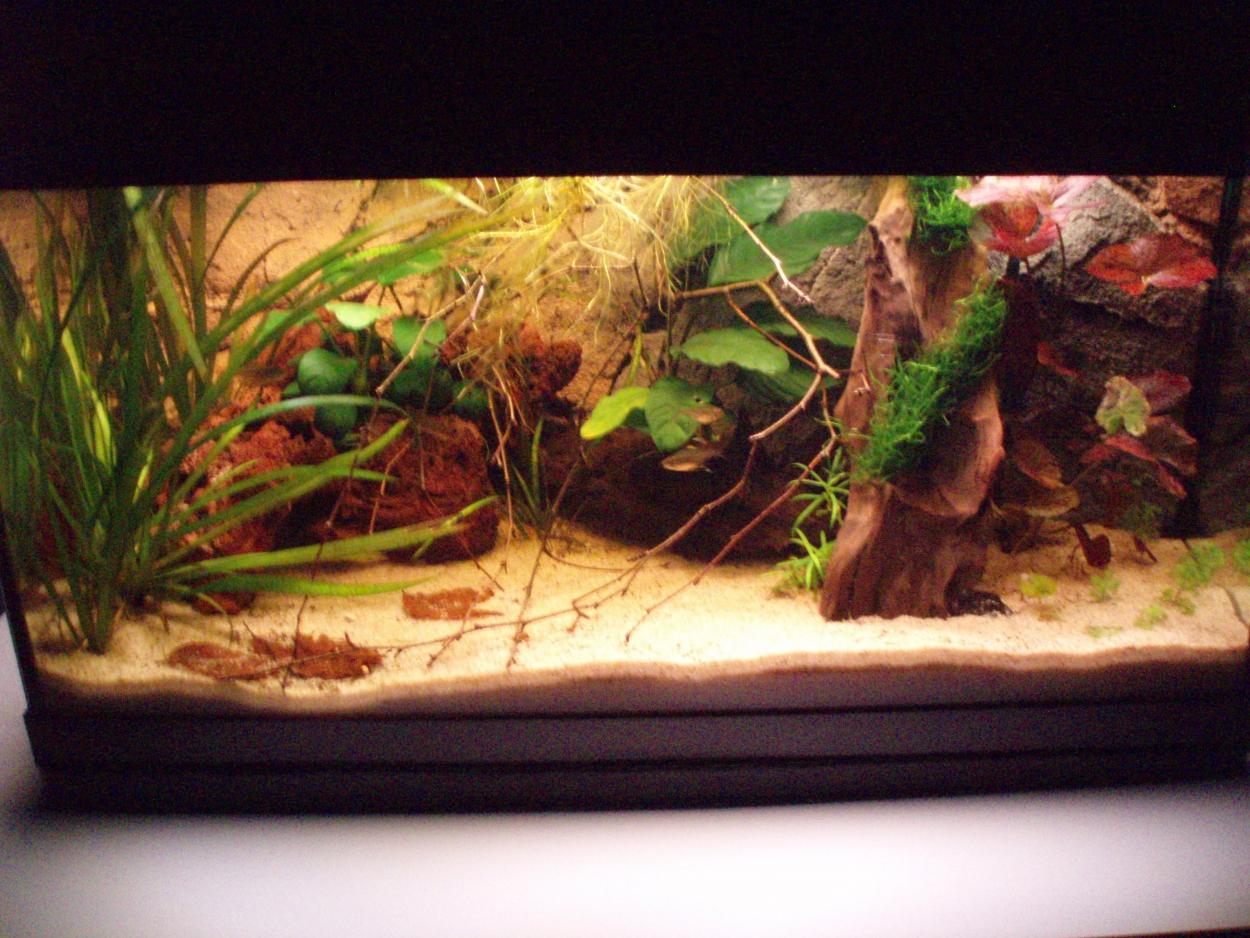 levande svarta mygglarver är kanske precis vad som behövs för att få apistosarna till lek. jag bytte också med kallt vatten idag för det ska ju hjälpa.