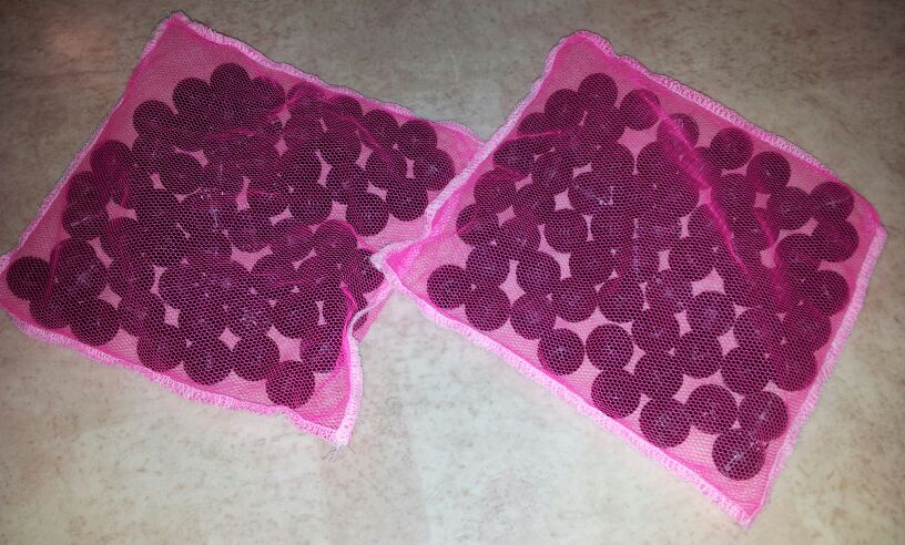 Sen har jag fixat två påsar med biobollar :-) ledsen freddi36 det blev inte ditt nät. Men det kommer nog till användning nån annan gång. Amanda på DM har massa nät hemma så jag valde rosa för att zandra skulle känna att nått var fint med karet :-P inte för att man kommer se det sen men jag är iaf den ende i världen som har rosa filterpåsar :-P